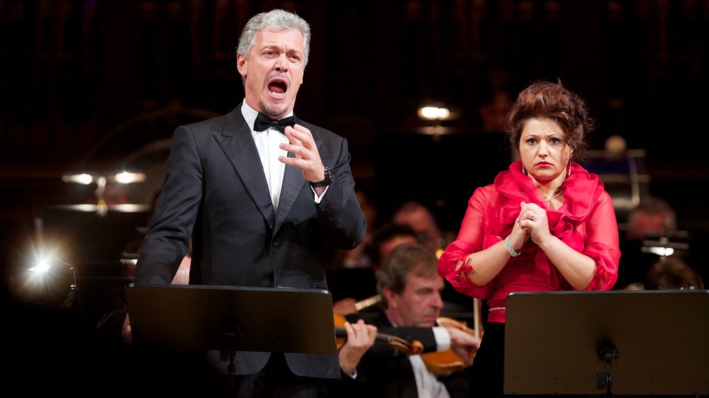 Marcello Rota, Český národní symfonický orchestr a Mario Malagnini se před třemi lety sešli v Praze při jakémsi pokusu o kulturní událost, který – možná naštěstí – proběhl za minimálního zájmu médií. Filmový režisér Dušan Rapoš a herečka Eva Vejmělková se obří produkcí své rockové opery Pietro e Lucia snažili v holešovické sportovní hale přesvědčit zájemce o tom, že jsou ve skutečnosti hudebním skladatelem a operní libretistkou. Nerad bych se pouštěl do spekulací, zda se jim to podařilo, ale pozoruhodnou na celé věci byla nezvykle hojná účast renomovaných italských operních pěvců. Jedním z nich byl i barytonista Gianfranco Montresor, který se tentokrát na Prague Proms představil v přece jen důstojnější roli barona Scarpii. Veronský rodák patří už několik let k téměř kmenovým spolupracovníkům projektů Českého národního symfonického orchestru, ale má za sebou i pozoruhodnou kariéru hosta evropských operních domů a hudebních festivalů. V roce 2010 stál v jedné z menších rolí po boku Plácida Dominga, Vittoria Grigola a Julie Novikovy v televizní inscenaci Verdiho Rigoletta z italské Mantovy. V Praze nyní předvedl velmi kvalitní pěvecký výkon a uměřeně, ale přesvědčivě herecky naznačil Scarpiův charakter.