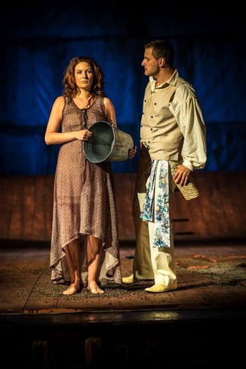 Předehra. Krásná venkovanka Eva s bohatou hřívou vlasů v poloprůsvitných šatech hnědavé barvy, které jsou vepředu krátké, vzadu dlouhé. K nim obouvá na své holé nohy hrubé gumové holínky. Scéna plná vášnivé lásky s Mánkem, se synem bohaté Mešjanovky. Škádlí se až rituálně (polévání vodou). Eva je propojená se zemí. Celý střed jeviště je jejím útočištěm a zem, půda, jejím nejvlastnějším vyjadřovacím prostředkem. Vysypává zem z kovových kbelíků na prkennou podlahu, sype ji i do vlasů sobě a ostatním, rozhazuje ji kolem sebe. Jejím prostřednictvím se brání, bojuje, ve svém zoufalství téměř vleže vytrhává prkna z podlahy, devastuje tím samu sebe. Nesejde z jeviště – celá opera je věnována plně jí, proměnám její psychiky, její lásce, její vášni i nenávisti. Především o ní promlouvá Foersterova dramatická hudba. Součástí scény je Samko vrostlý do své dřevěné židle. On je svědkem všeho dění, ale také důležitým hráčem na půdorysu dramatu. Zpočátku se bojí Evy byť jen lehýnce dotknout, ale jakmile pochopí, že mu to ona dovolí, okamžitě silně reaguje. Je přešťastný, když Eva z trucu svolí ke svatbě s ním, s člověkem, který ji miluje nade všechno. Chce mu být dobrou ženou, těší se, že bude hospodařit. Ale – už od počátku cítí, že jej nemůže milovat. A tak usedá na jeho klín čelem k němu s gestem ženy odevzdané svému osudu. Konec prvního jednání.Eva uskupí nábytek, chudé zařízení Samkovy světničky – šicí stroj místo stolu, dvě prosté dřevěné židle. Zuzka pokrývá stolek obřadně ubrusem, dává na něj květiny, nachystá dva kameninové hrnky. Eva ten náznak spokojené domácnosti po provokativní návštěvě Mánkovy matky Mešjanovky prudce odstrojuje, ničí. A Samko neustále, často jen němě, sedí na svém místě blízko pravého portálu, je nezbytnou součástí scénografie, nezbytnou součástí dramatu. Jeho světnička je nehluboká, za ní se tyčí krátká dřevěná šikma a rovný horizont s náznakem výhledu někam ven z místnosti, po němž v klíčových okamžicích stékají celé proudy vody. Po smrti malé dcerky, k níž Samko nezavolal včas lékaře, utíká se Eva na hřbitov, k té své zemi, která kryje to, co bylo součástí jejího života. Když za ní přichází Mánek, nešťastně šťastná se vrací do jeho náruče, aby odjeli na práci do ciziny za chimérou společného života. Samko zoufale rozbíjí dřevěného koníka jejich zemřelé dcerky.Třetí jednání – dožínky někde v Rakousích, prázdné kbelíky obrácené dnem vzhůru jsou jediným scénografickým doplňkem jeviště. Opilý Rubač Evě vmete do tváře, že není Mánkova (gazdova) žena, ale jen jeho „roba“. Váhavý Mánek není schopen zvolit život s ní a osamělá Eva se dojemně i s jistou vyrovnaností loučí se životem a končí jej skokem do řeky. Samko vstává, obrací svou židli zády k obecenstvu a znovu na ni usedá.Foerterovu operu Eva jsem viděla kdysi dávno, její časté uvádění skončilo s šedesátými lety minulého století, v době, kdy operní herectví v jejích inscenacích bylo málo dynamické a na jevišti vládl jakýsi všeobecný chudý realismus. Historicky nejnovější premiéra této Foersterovy opery se u nás konala v Národním divadle v režii Karla Jerneka roku 1981. Poslední libereckou premiéru řídil před pětačtyřiceti lety (1971) otec nynějšího šéfa opery a dirigenta Martina Doubravského.Je možné tuto operu představit v podobě, která by byla přístupná a působivá pro současného diváka? Liberecký inscenační tým ve složení Martin Doubravský, režisérka Linda Keprtová a výtvarnice Marie Blažková podnikl společnou, dokonale koordinovanou cestu k podstatě Foersterova hudebního dramatu. Všichni táhli za jeden provaz a uvěřili odvážné režisérčině koncepci, jejímž cílem bylo vytvoření životných postav, stavěných do konkrétních situací, které postupně utvářejí jejich stále se vyvíjející vztahy. Zvolili si nelehkou cestu – v podstatě holé jeviště s minimem scénografických prostředků a na něm bohatou a důslednou hru postav s rekvizitami, které spoluvytvářejí jejich pocity a mají značný metaforický přesah (Eva a zem, kbelíky, květináče, prkna, lahve s vodou, hra Evy a Zuzky s nábytkem, Samkův klobouk či další součásti kostýmů). Režisérka dokázala jednotlivé motivy korunovat překvapivými pointami v závěrech jednotlivých dějství. Tyto ryze divadelní prostředky jí slouží k modelování jednotlivých postav, jejich vztahů, které se postupně objasňují prostřednictvím dramatických situací. Inscenaci nazkoušeli až na dvě výjimky v jednom obsazení a tato skutečnost bezpochyby umožnila týmu soustředěnější práci. Navíc se podařilo obsadit postavy i typově přesně a Eva v podání Lívie Vénosové, Mánek Josefa Moravce, Samko Svatopluka Sema i Zuzka Blanky Černé jsou osobami z masa a krve.Dirigent Martin Doubravský může díky svému soustředěnému zaujetí, s nímž dílo řídil, přičlenit hudební nastudování Foersterovy Evy ke svým vrcholným inscenacím pro způsob, jakým zvýraznil a působivě revitalizoval dramatičnost a vášnivost Foersterovy hudby a podpořil tak veškeré dění na jevišti. (Jen se domnívám, že by strhujícímu vyznění díla napomohl menší škrt na začátku třetího jednání, kdy poměrně dlouhý folklorní úvod a valčík zpomaluje dramatickou gradaci závěru inscenace.) Sbor, jemuž režisérka vtiskla stylizovaný pohyb, má v opeře roli spíše náladotvornou, jeho akce tvoří zázemí jednacích postav. Výtvarná složka, scénografie i kostýmy, byla v rukou Marie Blažkové, která vytvořila prost