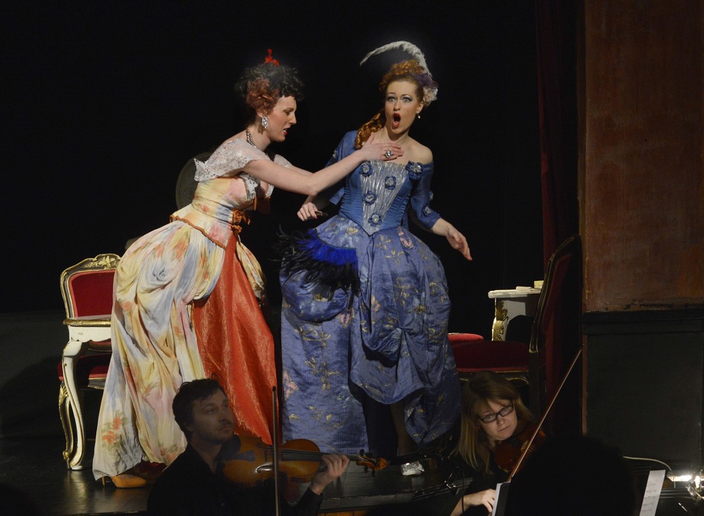 Pro nastudování Mozartovy opery známé pod jménem Der Schauspieldirektor se podařilo katedrám zpěvu a operní režie a pantomimy pražské Hudební fakulty AMU získat příjemný sál Vršovického divadla Mana, umístěného v prvorepublikové budově sídla Husova sboru.