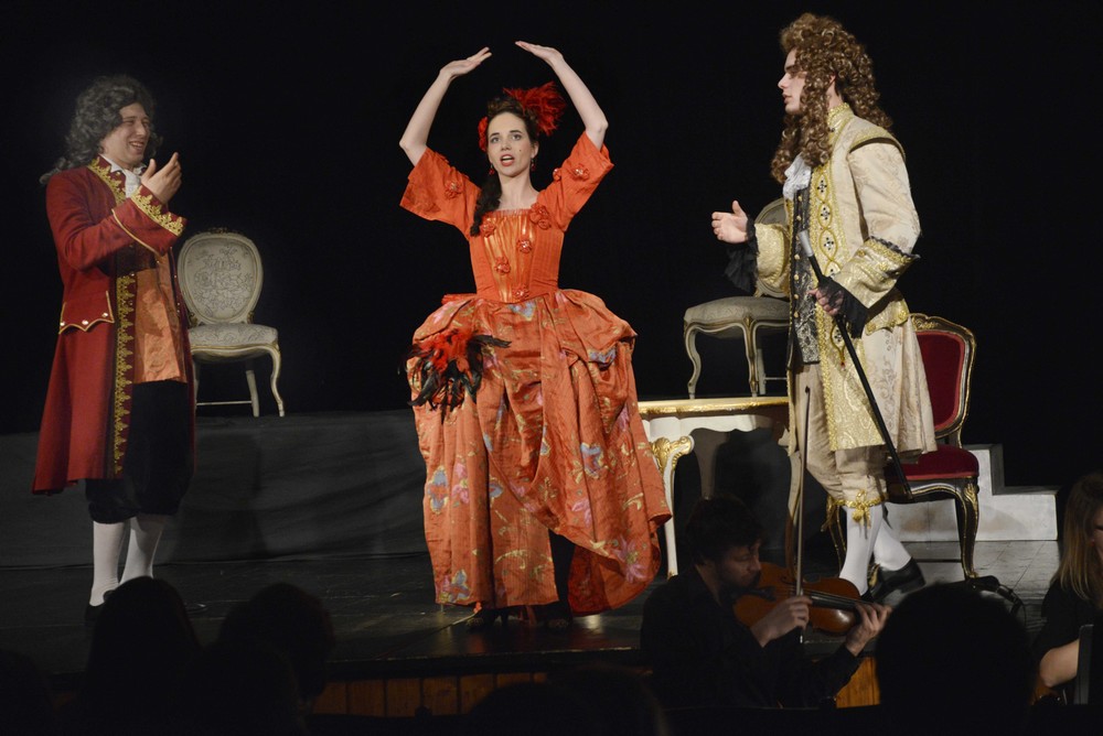 Jednoaktové dílko objednané císařským dvorem mělo premiéru ve Vídni v oranžerii zámku Schönbrunn v únoru 1786. Základní syžet tohoto původně singspielu je vlastně platný dodnes. Direktor divadla sestavuje operní soubor pro uvedení nové hry za pomoci zkušeného divadelníka Buffa. Vznikají zápletky ohledně angažování hereček, financování projektu, gáží a všeho, co s tím souvisí. Představení uváděné studenty se značně zatraktivnilo vložením hudebních čísel z Mozartových oper Così fan tutte, Don Giovanni, Figarova svatba a Idomeneo. Tím bylo lépe umožněno jednotlivým mladým studentským představitelům ukázat, co se ve škole naučili. Hodinu a čtvrt trvající představení za hudebního doprovodu smyčcového kvarteta orchestru Quattro s dirigentem Petrem Jiříkovským má i přesto, že je v něm hodně mluveného slova, díky přirozené komediálnosti účinkujících a neposledně i krásnému muzicírování náležitou živost a spád. Na jednoduché scéně vybavené pouze nábytkem zaujaly také efektní dobové kostýmy. Myslím, že onou roztomilou hříčkou se bavili nejen diváci, ale také všichni aktéři obou premiérových představení.+++
