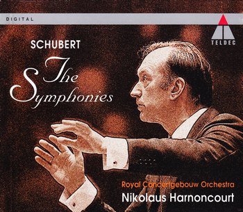 Harnoncourtova první souborná nahrávka Schubertových symfonií byla až na živě zaznamenanou Velkou symfonii C dur D 944 natočena v Amsterdamu s Královským orchestrem Concertgebouw v květnu a listopadu 1992 (Teldec 4509-91184-2, Warner Classics 2564623232) jako dirigentův třetí velký projekt po vrcholných symfoniích Mozartových (Warner Classics 2564-62334-2, 1980/11–1988/2) a Londýnských symfoniích Haydnových (Warner Classics 2564-63061-2, 1986/10–1992/11). Musel to být pro hráče prvního holandského orchestru pozoruhodný okamžik, když se před ně pět let po Leonardu Bernsteinovi (Deutsche Grammophon 1987) postavil Nikolaus Harnoncourt, od poloviny sedmdesátých let pravidelný host orchestru, se svou představou Schuberta á la dělená strava: Harnoncourtův amsterdamský Schubert jako by byl estetickým kojencem dirigentova ansámblu starých nástrojů Concentus musicus Wien – respektuje všechny repetované úseky (až na II. větu Velké symfonie), před krásou tónu preferuje naprosto transparentní zvuk a rytmickou elasticitu mongolských akrobatů. I v těch nejrustikálnějších pasážích se orchestr vznáší ve zvukovém prostoru několik centimetrů nad podiem. Harnoncourtův první schubertovský komplet je svěží jako přímořský vánek a zdravý jako holandská strava, ale stěží v něm lze zaslechnout cosi z melosu a rustikálního podupnutí Schubertovy domoviny, které rozvíjeli Bruckner i Mahler a který se vynoří (hlavně v menuetech a jejich triích) v mladších berlínských a vídeňských snímcích posledních let. Amsterdamská interpretační koncepce snad nejvíce prospěla snímkům prvních dvou symfonií a symfonie páté, v ostatních symfoniích postrádám více agogiky, kterou tehdy Harnoncourt šetřil, aby ji plnýma rukama rozdával ve snímcích z Berlína a Vídně. Kdyby však zůstalo jen u tohoto Harnoncourtova kompletu z počátku devadesátých let, setrvaly by nahrávky alespoň čtvrté a osmé symfonie mezi pozoruhodnými snímky, které nelze opomíjet ani dnes. Třeba jen hrozivý klimax II. věty symfonie C dur D 944 se ve snímcích z téže doby (Claudio Abbado s Evropským komorním orchestrem, Deutsche Grammophon) zaslechne stěží. Jako když se lisují jablka, takový je Harnoncourtův amsterdamský Schubert – zdravý, svěží, decentně šťavnatý. Chce se Vám po něm oběhnout olympijský stadion více než ustrnout v hrůze při pohledu do podsvětí Schubertovy symfonické tvorby. A při vší svěžesti holandských jablek se začnete shánět po tyrolské šunce a korutanských sýrech.
