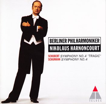 Amsterdamským cyklem Schubertových symfonií se Harnoncourtovy aktivity v oblasti nahrávání skladatelových děl v devadesátých letech rozhodně neuzavřely, ba právě naopak. Již v lednu 1995 vzniknul Harnoncourtův live snímek 4. symfonie c moll D 417 s Berlínskými filharmoniky, dramaturgicky ideálně doplněný Mendelssohnovou ouverturou O krásné Meluzíně op. 32 a Schumannovou 4. symfonií d moll op. 120 (Teldec 4509-94343-2). Živý záznam byl nejen předzvěstí rozsáhlejší spolupráce s filharmoniky z Berlína na schubertovském projektu let 2003–2006, ale především ojedinělým projektem, z něhož vzešla jedna z dramaturgicky a umělecky nejpozoruhodnějších dirigentových nahrávek devadesátých let. Při nesporné umělecké kvalitě Harnoncourtových schubertovských snímků bych mezi jeho záznamy Schubertovy c moll Symfonie patrně upřednostnil právě živou nahrávku z Berlína 1995, odhlédnu-li od antikvovaného video záznamu s Vídeňskými filharmoniky (sedí mezi nimi tytéž znuděné obličeje, které známe z legendárního dokumentu o Bernsteinově přípravě Mahlerovy 5. symfonie). Ne snad nejpomalejší zaznamenaná tempa, která Harnoncourt zvolil, ale spíše dramatická introdukce k první větě, koncentrovaná věta druhá, hrubé scherzo a jemnými agogickými valéry odstíněné finále činí z tohoto živého záznamu zvukový skvost. Jeho významnou přidanou hodnotou je dvojice děl, Mendelssohnova koncertní ouvertura (podle Nikolause Harnoncourta první programní skladba evropských hudebních dějin vůbec) a Schumannova 4. symfonie ve druhé verzi z roku 1851, kterou dirigent zaznamenal jen s Berlínskými filharmoniky (snímek první verze je dostupný s Evropským komorním orchestrem, Warner Classics 2564-69928-5).