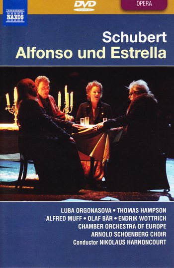 V žádné oblasti Schubertovy tvorby se Harnoncourt neangažoval tak odhodlaně jako ve skladatelově operní tvorbě: Již na přelomu osmdesátých a devadesátých let uvedl ve Štýrském Hradci a Curychu zpěvohru Ďáblův letohrádek a v květnu 1997 společně s režisérem Jürgenem Flimmem uvedl v Divadle Na Vídeňce tříaktovou operu Alfonso a Estrella, tehdy s Ľubicou Orgonášovou (Estrella), Thomasem Hampsonem (Froila), Endrikem Wottrichem (Alfonso), Olafem Bärem (Mauregato) a Alfredem Muffem (Adolfo) v titulních rolích. Partnery ojedinělé inscenace byl Evropský komorní orchestr a Sbor Arnolda Schönberga. Po osmi letech se Harnoncourt k opeře za užití vlastních krácení mluvené prózy vrátil v dubnu 2005 v Berlíně, kde mu byli partnery Berlínští filharmonikové a Rozhlasový sbor Berlín připravený Uwe Gronostayem. Hlavní interpretační rozdíl mezi oběma inscenacemi kromě absence scénické složky a koncentrace na vlastní hudební tvar spočívá podle mého názoru v suverénnějším hudebním ztvárnění partitury se smyslem pro řadu detailů a harmonických valérů. Kvalitám berlínského snímku napomohl i technicky bezchybný výkon orchestru, vynikající sbor a sólový ansámbl, směle konkurující staršímu pěveckému týmu. Ľubicou Orgonášovou vystřídala Dorothea Röschmann: obě dámy disponující rovnými, spíše tmavšími soprány, paní Röschmann má však v hlase o kapku více naléhavosti a „věčné ženskosti“ (Johann Wolfgang Goethe), a ačkoliv je to jen otázka osobních preferencí, upřednostnil bych ji před slovenskou kolegyní. Edriku Wottrichovi bych dal naopak přednost před Kurtem Streitem, jehož hlas nezní tak příjemně a mladistvě svěže jako hlas mladého Wottricha.