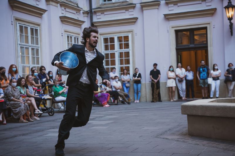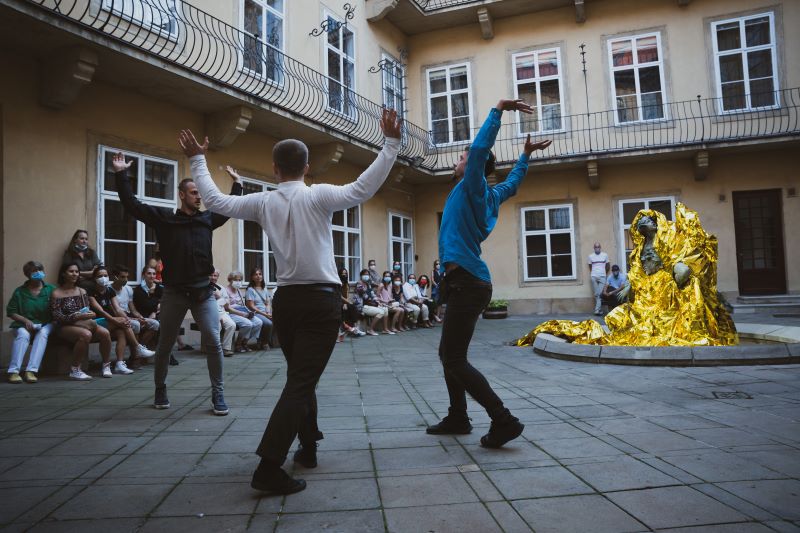 Prvou performáciou bol Genius Loci v dramaturgii choreografky Barbory Janákovej. Na nádvorí Pálffyho paláca vidíme hromadu oblečenia – hmoty (Lucia Kašiarová), ktorá ožíva a formuje sa do ľudskej podoby. Jej dynamika, kvalitný pohybový materiál, pôsobí čisto a prirodzene, bez štylizovaného výrazu. Vzniká akýsi „oltár“ všetkých národov, náboženstiev, presvedčení… Genius Loci sa stelesňuje, aby v zápätí hneď unikol v priestore a ukázal smer ďalšej performancie.
