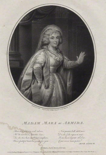 V dnešní době, kdy operním jevištím vévodí zpěvačky všech možných světových národností, si možná ani neuvědomujeme, že tento kosmopolitismus nebyl pravidlem. Existovaly časy, kdy na zářnou mezinárodní kariéru mohly pomýšlet, až na výjimky, jen Italky. Jednou z prvních pěvkyň, kterým se podařilo popřít toto pravidlo, byla Gertrud Mara (1749–1833). Přestože v letošním roce uplynulo od její smrti již 180 let, je u našich západních sousedů stále považována za jednu z nejlepších operních pěvkyň, které kdy vzešly z německé země. Gertrud Elisabeth Schmeling se narodila 23. února 1749 v Kasselu jako osmý potomek městského muzikanta a opraváře hudebních nástrojů Johanna Schmelinga. V útlém věku ji postihla křivice, což ji odsoudilo k tomu, že většinu času trávila na rozdíl od svých vrstevníků doma. Jejím nejoblíbenějším místem se stala otcova dílna. Přestože měla zákaz dotýkat se hudebních nástrojů, housle ji přitahovaly tak mocně, že tatínkových příkazů nedbala. Když Johann Schmeling podruhé přistihl svou tříletou dceru s houslemi v ruce, domníval se, že ji dostatečně potrestá tím, že se na ně bude muset naučit. K jeho velkému překvapení se však trest minul účinkem. Gertrud jej přijala s nadšením a otci Johannovi bylo brzy jasné, že v jeho dcerce dříme obrovský talent. O dva roky později již Gertrud měla v Kasselu své první veřejné vystoupení.