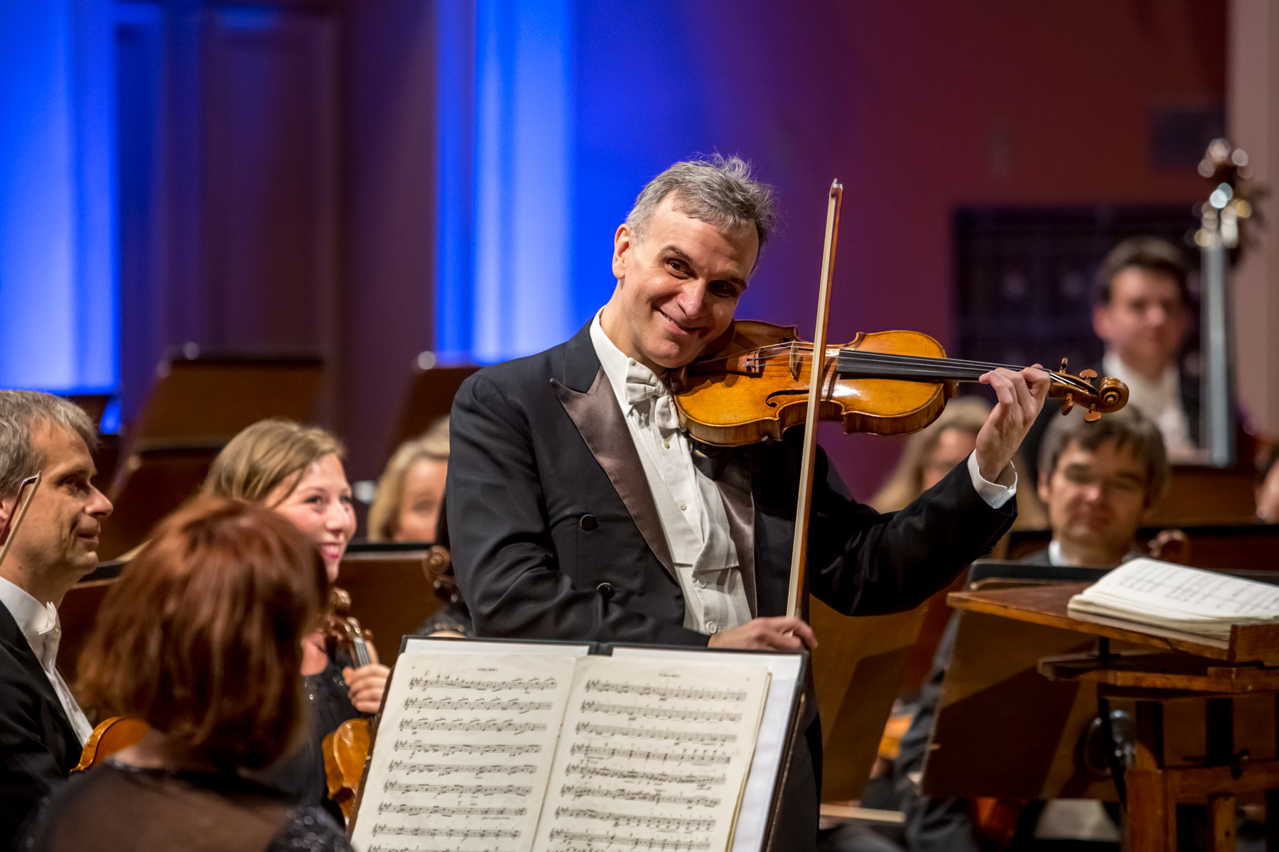 Centrem zájmu večer byl Gil Shaham, letošní kurátor komorní řady festivalu. Nadchl před několika dny naplno už dvěma komorními koncerty, v klavírním kvintetu s ním usedli naši umělci Josef Špaček a Pavel Nikl a též cellista Kian Soltani a pianista Gerhard Oppitz, kteří s Gilem Shahamem v dalším koncertu vytvořili trio. Gil Shaham je miláček pražského publika už drahně let a byl jednoznačným lákadlem na Koncert pro housle a orchestr a moll, op. 53, B 108 Antonína Dvořáka hned od zveřejnění festivalového programu. O atraktivnosti Dvořákova houslového koncertu není pochyb, ačkoliv je to dílo dlouhého zrodu. Objednal si jej nakladatel Simrock v čase, kdy Antonín Dvořák byl po velkých úspěších zejména Slovanských tanců portfoliovou hvězdou jeho nakladatelství, v čase, kdy byli velmi populární houslové koncerty Johannese Brahmse a Maxe Brucha. Nakladatel si přál mít koncert „hodně originální, bohatý na kantilény a pro dobré houslisty“. To vše Dvořákův koncert naplno splňuje, byť dnes jsme konfrontováni s dílem dlouhého vzniku; houslista Joseph Joachim, jehož skladatel požádal o revizi partu, nacházel k takové spolupráci čas jen sporadicky a různé přepisy pak znamenaly velká zdržení. Jaká škoda, že se nedochoval autograf úplně první verze z roku 1879, možná by nám dnes po sto čtyřiceti letech byl nejmilejší.