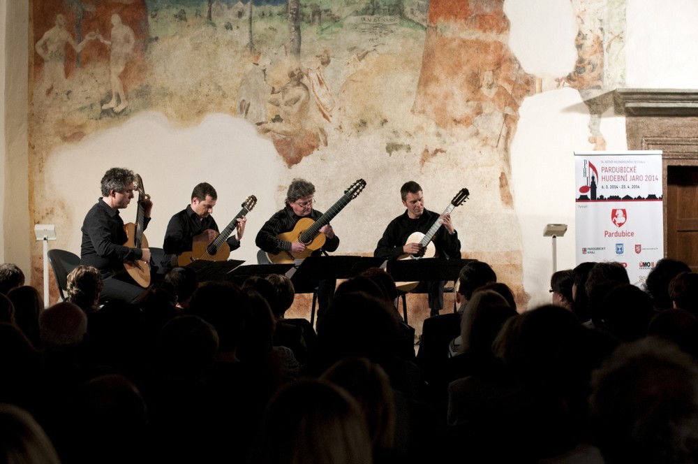 Pardubické hudební jaro vstoupilo do třetího týdne letošního ročníku externím festivalovým koncertem ve středu 19. března v Kulturním domě v Holicích. Publikum ve zcela zaplněném sále vyslechlo Čtvero ročních dob Antonia Vivaldiho v excelentním podání komorního souboru Barocco sempre giovane se sólistkou Ivou Kramperovou. Koncert moderoval a dobové sonety přednesl Alfred Strejček.+++===Hned následující den připravili pořadatelé dramaturgickou lahůdku do Rytířského sálu pardubického zámku. Posluchačům se představil ve Vídni sídlící kytarový kvartet Guitar4mation. Jeho složení je mezinárodní: Petr Saidl (Česká republika), Michal Nagy (Polsko), Martin Schwarz a Martin Wesely (Rakousko). Jde o čtyři silné osobnosti a vynikající hráče, zaměřující se především na hledání nových netradičních forem interpretace. Pardubický koncert byl malým průřezem jejich repertoáru, v němž se objevují skladby od romantismu a impresionismu až po latinskoamerický folklór či jazz a nejrůznější aranže popu.