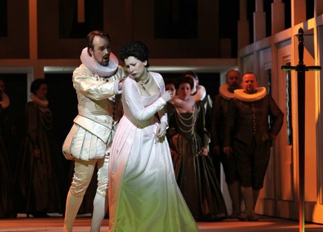 Velkým překvapením včerejší druhé premiéry s částečně novým obsazením se pak stal Martin Šrejma jako Robert Devereux, který oproti svému alternantovi Normanu Reinhardtovi dokázal daleko působivěji tlumočit emocionální rovinu svého partu, jenž tak vyzněl o poznání plastičtěji. Pozoruhodný výkon pěvecký i herecký odvedl coby lord Mounjoy také Aleš Jenis, plný příjemně zbarvený baryton evidentně mající potenciál dalšího růstu, který bude zajímavé dál sledovat; tím spíš se lze těšit na Jenisova slibovaného Dona Giovanniho v nově chystaném pražském nastudování na letošní červen. Jako Frances zaujala o druhé premiéře Kateřina Jalovcová, i díky jejímu výkonu nabyla scéna ponížení ze strany Alžběty až na mrazivé přesvědčivosti. Pěvecky subtilněji než charismatický Jaroslav Březina o premiéře, ale též úspěšně si vedl Václav Lemberk – Duch masky, zaujali i Hospodyně Yvony Škvárové a Zdeněk Plech jako Zpěvák (rébusem tak zůstává Plechovo již na počátku víkendu ohlášené odřeknutí dnešního koncertu se SOČRem pro údajnou zpěvákovu indispozici).