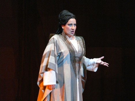 Speváčka bola kedysi ozdobou premiéry tejto Verdiho opery. Naposledy som ju počul (asi pred rokom) ako Pucciniho Tosku a vtedy sa mi zdalo, že napriek zrelej profesionalite jej hlas už poznačila únava. Z jej Aidy som mal teraz oveľa lepší dojem. Part odspievala suverénne, v prvej polovici predstavenia s dôrazom na dramatické vrcholy, od Nilského obrazu zasa potvrdzovala, že do najvyšších polôh sa vie dostať aj v pôsobivom mezzavoce a verdiovská fráza je jej vlastná. Jej ženskou partnerkou ako Amneris bola nádejná mezzosopranistka Michaela Šebestová (doteraz v Slovenskom národnom divadle obsadzovaná len do menších až stredných úloh), ktorá nám predostrela lyrickú koncepciu interpretovaného partu (s vrcholom v troch opakovaniach Oh vieni… v úvode tretieho obrazu).