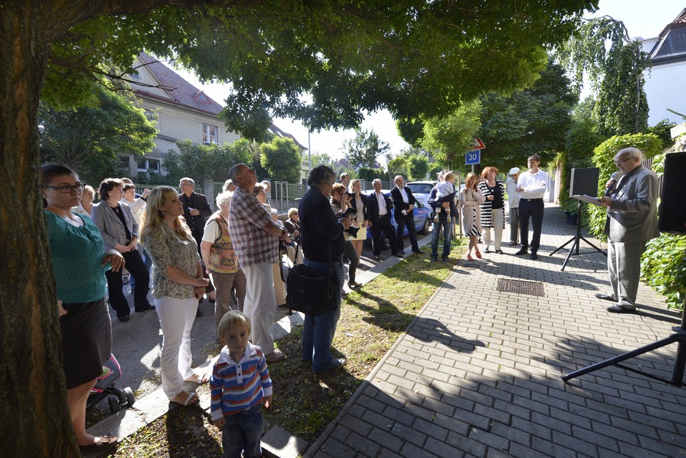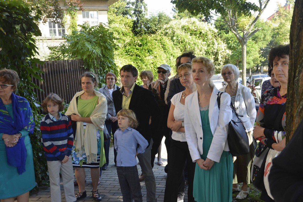 Dnes zde žijí jeho potomci a ti byli samozřejmě na slavnostním aktu přítomni. Musím tedy jmenovat primabalerínu Národního divadla Adélu Pollertovou a také Kláru Pollertovou-Trojanovou i s jejím manželem hercem Ivanem Trojanem. Byl zde i další pravnuk Jaroslav Pollert mladší a také jejich děti. Nejdříve přítomné pozdravil pravnuk Emila Pollerta, olympionik a lékař Lukáš Pollert. Pak se ujal obsáhlého úvodního slova ředitel Národního divadla Jan Burian, který přiblížil kariéru umělce a jeho významný vklad české hudební kultuře, krátké slovo si také vzala i starostka městské čtvrti Prahy 6 – Dejvic Marie Kousalíková. A protože basista Pollert byl zpěvákem, nesměla chybět hudba. Na chodníku před zelení obrostlým plotem byly instalovány reproduktory a z nich se ozvaly tóny historické nahrávky Smetanovy Prodané nevěsty z roku 1933. Byl to dvojzpěv Jeníka a Kecala, což byla umělcova role snad nejznámější a nejčastěji zpívaná. Jeníka zpíval Václav Tomš, Kecala Emil Pollert a dirigoval Otakar Ostrčil. Emil Pollert patřil také k zakladatelům přírodního divadla v Šárce, kde právě Kecala v Prodané nevěstě ztvárnil. O další muzikantskou vložku se postaral sólista Národního divadla Luděk Vele. Zpíval árii purkrabího z Dvořákova Jakobína naprosto netradičně z okna v prvním patře právě nad umístěnou skulpturou. Jeho hlas, samozřejmě bez amplifikace, se krásně nesl prostorem prosluněné ulice. Na závěr pak Luděk Vele přinesl milému publiku ještě jeden hudební bonbónek. Byla to slavná Píseň o bleše od Modesta Petroviče Musorgského. A protože toto dílko je tolik oblíbené u slavných basistů (vzpomeňme na nepřekonatelného Fjodora Šaljapina), bylo to nejlepší zakončení příjemného dopoledne.+++