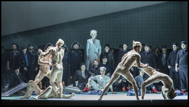 Režisér Daniel Špinar v celkové koncepci dal přednost tématu homoerotické fascinace před abstraktnějším tématem nesouladu práva a spravedlnosti, kterým se autor předlohy Herman Melville zabývá především. Vydatnou pomocí režisérovu záměru – vytvoření jakési balady o zakázané mužské touze – je vizuální složka inscenace, zejména choreografie Radima Vizváryho a účast akrobaticko-pohybového souboru Losers Cirque Company. Pohybová složka znamenitě doplňuje a spoluvytváří fyzické herectví operních zpěváků. Výtvarná inspirace tvůrců dosahuje širokého spektra, především v kompozicích z lidských těl poznáváme dílo anglického literáta a výtvarníka Williama Blakea (což byl také jeden z oblíbených autorů Benjamina Brittena, který na jeho básnické texty zkomponoval písně), ale i dílo Vincenta van Gogha (Vězeňský dvůr) nebo estetiku inscenovaných fotografií současných ikon homoerotického umění Pierra a Gilla.