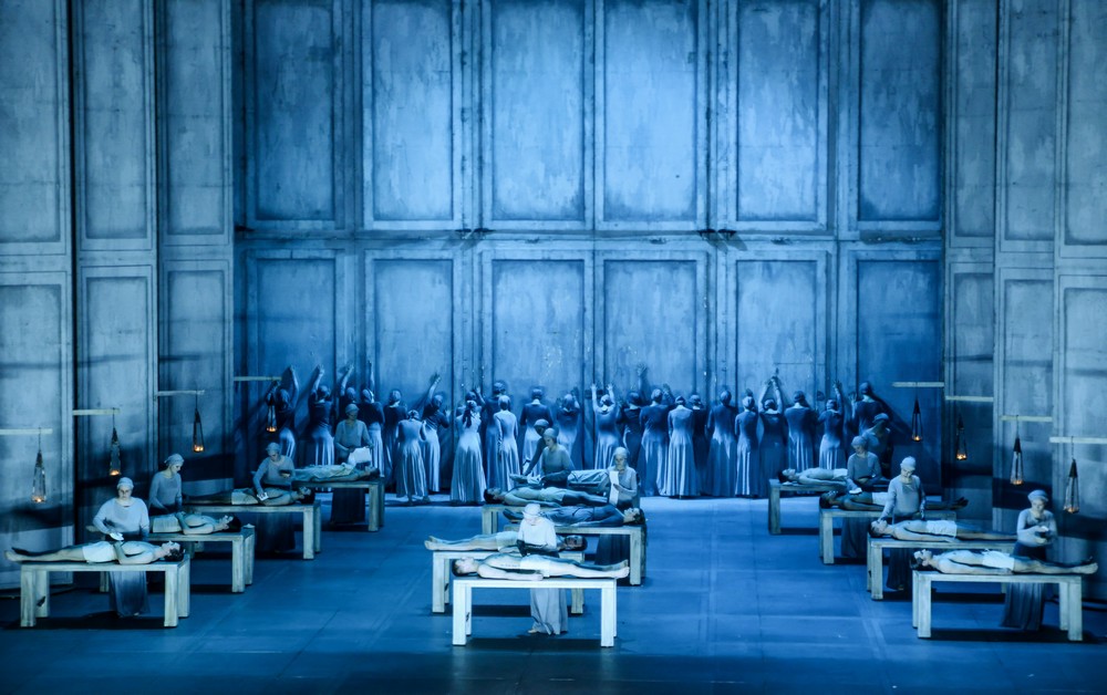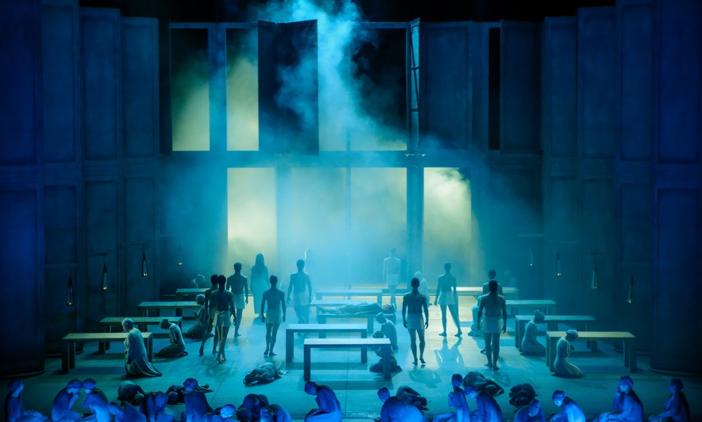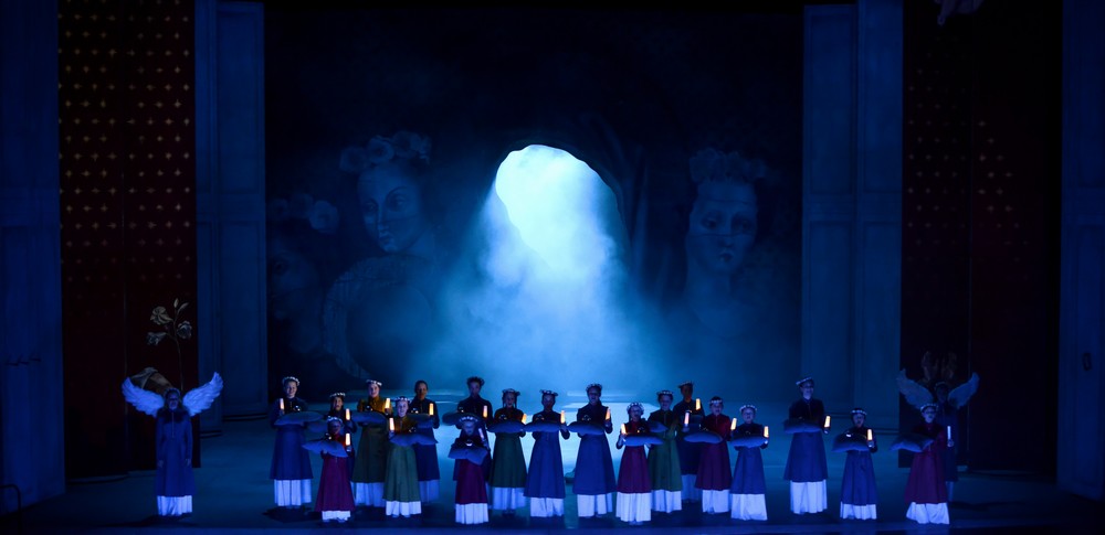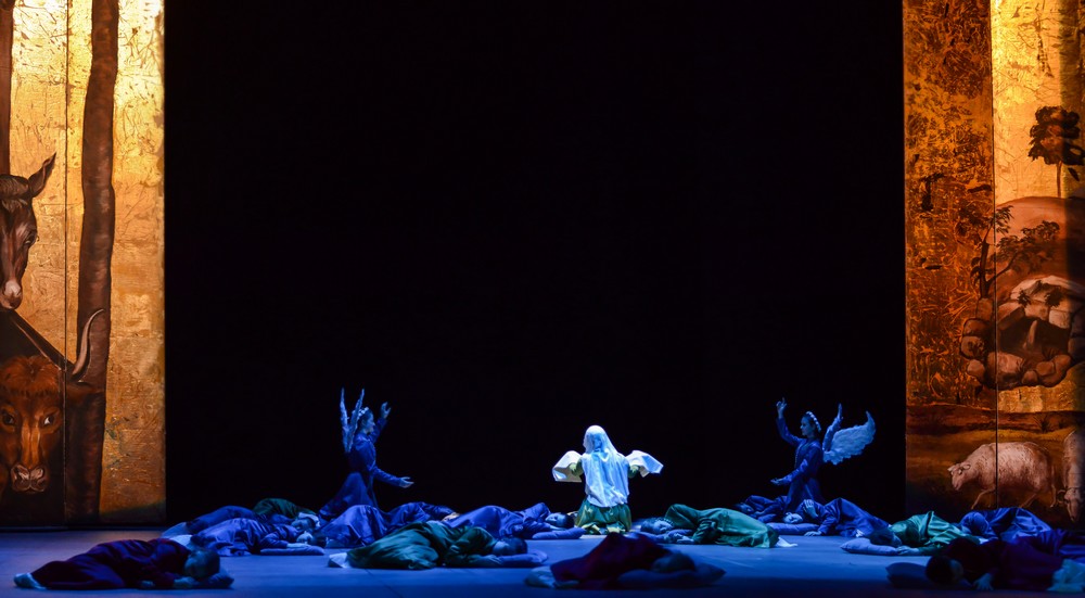 Jiří Heřman se rád věnuje site specific inscenacím, hledá pro ně nové prostory, kterých dokáže tvůrčím způsobem využít. Ukázalo se, že právě v brněnském Janáčkově divadle, v jeho strohé prostorné architektuře ožila Heřmanova inscenace opery Bohuslava Martinů Hry o Marii ve všech svých výrazových elementech. Po pražské premiéře Her o Marii před pěti lety ve mně zůstal dojem opulentní, výtvarně vyšperkované inscenace, která sice byla inscenací koncepčně sevřenou, ale postrádala prostotu a lidské teplo, které jsou pro tuto operu Bohuslava Martinů nezbytné. Zlatá nádhera portálů a hlediště včetně osvětlené Hynaisovy opony na samotném počátku, hlediště zmenšené o všechny lóže na prvním balkonu, v nichž byli umístěni sboristé, velké akustické problémy pro všechny diváky, kteří neseděli ve středu přízemí, protože jen tam se sborový zvuk sléval. Nejlépe zněl až v závěrečné Sestře Paskalině, kdy se sbor konečně ocitl ve své zmenšené podobě na jevišti.