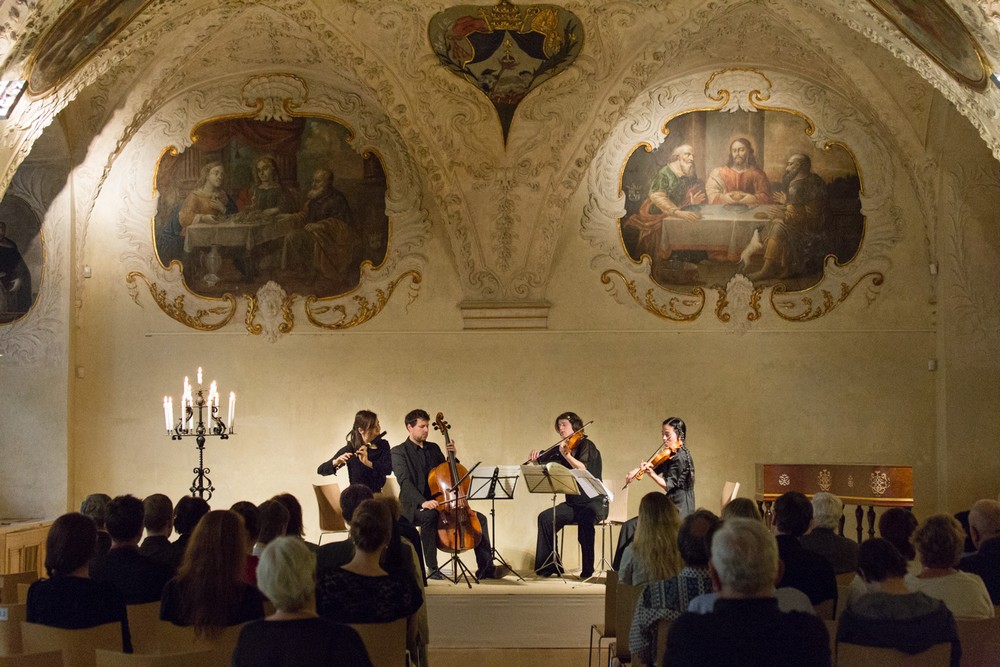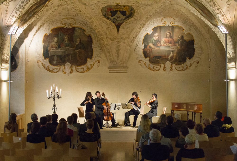 Po krátkém průvodním slovu koncert pokračoval Mozartovým Divertimentem Es dur pro housle, violu a violoncello, KV 563. Tato šestivětá skladba není často uváděna, neboť se jedná o poměrně rozsáhlé a interpretačně nelehké dílo, které vyžaduje důkladnou přípravu a porozumění. Všechny tři party byly velmi náročné, protože každý z nich se ocital v pozici sólového koncertantního nástroje. Trio vystřídalo celou plejádu charakterových a tempových odstínů, někdy i v průběhu jedné věty, a po hudební stránce bylo jejich provedení výtečným poslechem. Houslistka Anaïs Chen dominovala především v technické stránce hry, která byla velmi lehká. Její výkon však kalily intonační nedokonalosti, které občas narušovaly jinak průzračnou harmonii dobových nástrojů. V tom si mnohem lépe počínal violoncellista Daniel Rosin, který také hrál s patřičným hudebním nábojem a zároveň byl perfektní rytmickou oporou ansámblu. Po všech stránkách skvělý výkon pak podala violistka Martina Bischoff. Její lehká a dobře čitelná technika se výborně doplňovala s hudebním citem pro výstavbu i drobných frází. Měla velmi dobře zvládnutý také zvuk nástroje, takže její hra byla potěšující i po této estetické stránce. Soubor byl jako celek opět bravurně sehrán a v Divertimentu tak opět vyzněly všechny drobnosti, včetně jemných harmonických nuancí (například ve druhé větě se Mozart dostává už na práh romantické harmonie). Mozartovský večer byl velmi příjemným hudebním zážitkem a mladí hudebníci od publika sklidili dlouhé ovace.+++