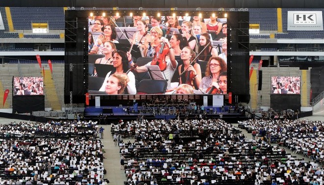 Více než sedm a půl tisíce klasických hudebníků se sešlo 9. července na fotbalovém stadiónu Commerzbank ve Frankfurtu. Orchestr byl složen z amatérských i profesionálních hudebníků z Německa, Rakouska a Nizozemí a překonal rekord orchestru, sestaveného na hudebním festivalu v Queenslandu v roce 2013, který měl sedm tisíc dvě stě dvacet čtyři členů. Ve svém pětačtyřicetiminutovém vystoupení pod taktovkou Wolfa Kerscheka orchestr provedl hudbu Antonína Dvořáka a Ludwiga van Beethovena. Německý institut Records se nyní snaží zařadit výkon do Guinessovy knihy rekordů.