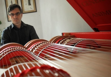 Její dvoubarevné klávesy vypadají jako u klavíru, ale při klavíristově dotyku se rozezní tóny ne nepodobné violoncellu. Koncem patnáctého století si vysnil a vynalezl autor slavné Mony Lisy Leonardo da Vinci, velký renesanční malíř a génius s mnoha nadáními, nástroj nazývaný viola organista, který vypadá jako klavír, v němž jsou spojeny klávesnice se smyčcem. O více než půl tisíciletí později jej polský klavírista, vášnivý milovník staré hudby a stavitel hudebních nástrojů Slawomir Zubrzycki probudil ze zapomnění.„Leonardo da Vinci vynalezl svůj nástroj mezi lety 1470 a 1480,“ vysvětluje přívětivý padesátník, který v listopadu na nástroji koncertoval na Akademii hudby v Krakově na jihu Polska. Jeho nástroj je po stranách modrobílý zdobený zlatem.