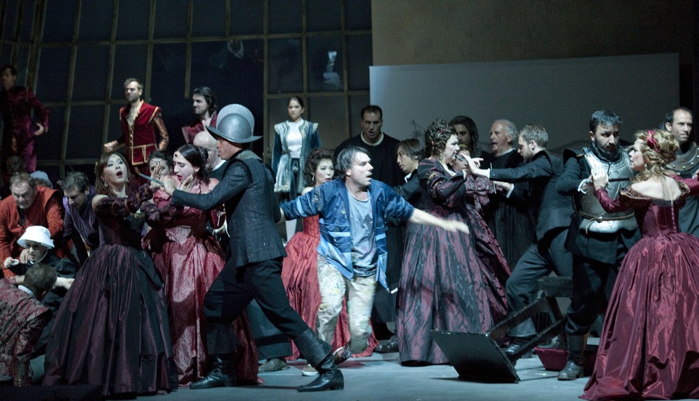Hudební nastudování náročného a obsáhlého díla (představení trvá čtyři hodiny se dvěma dvacetiminutovými přestávkami) měl v rukou dirigent Guido Johannes Rumstadt, který nejen dobře vystihl hlavní kontury opery, ale vzorně dílo nastudoval, a tak i jednotlivé sólové nástroje, doprovázející některá sólistická čísla, zazněly bez chyb a zcela uvolněně. Hudebně bych se jen snad přimlouval za určitá krácení v prvém aktu. Režisér Tobias Kratzer důmyslně proměnil původní balety za pantomimická čísla, na kterých se podílel i pěvecký sbor, a celková režijní koncepce je úctyhodná. Šťastně spolupracoval s autorem výpravy a kostýmů Rainerem Sellmairem, který dokázal dobře odlišit jednotlivé časové roviny režisérského záměru, neupadl do historizující nápodoby a uplatnil velkou dávku vkusu v celém projektu.+++