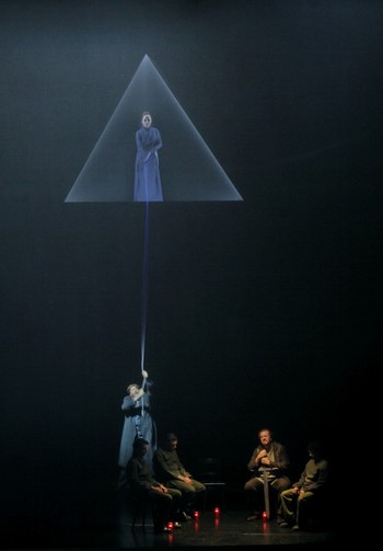 Svoje dielo o nespútanej láske bez hraníc a obmedzení nenadpísal Wagner ani ako opera, ani ako dráma. V záhlaví titulku stojí „Handlung“ (jednanie). Duševná tragédia ústredného páru prameniaca z príkreho rozporu medzi vnútornou túžbou po naplnení ich milostného vzťahu a konvenciami vonkajšieho sveta kráľa Markeho, podfarbená komplikovaným harmonickým konštruktom v orchestri, je svojou takmer absentujúcou vonkajšou akciou na javisku pre režisérsky tím obrovskou výzvou. Tretie dejstvo pozostávajúce takmer výlučne z monológov Tristana je z tohto hľadiska vždy tvrdým orieškom, ktorý sa Katharine Wagner podarilo rozlúsknuť keď nie najčistejším, tak určite pozoruhodným spôsobom. V difúznom svetle za závojom necháva pred Tristanovými očami z pološera javiska vyvstať rozličné obrazy Izoldy ako horúčkovité vízie jeho agónie. V matne nasvietených trojuholníkoch sa podľa vzoru ikonických madon objavuje postava Izoldy v splývavých modrých šatách.