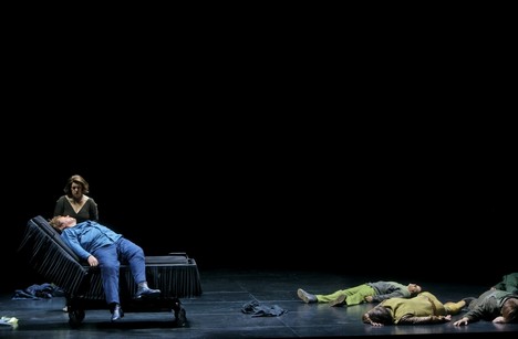 Raz ako svätý obrázok, ako siréna volajúca zblúdeného lodníka, zahalená pod vdovským závojom, inokedy bez hlavy, či so zakrvavenou tvárou. V momente, keď ju chce Tristan horúčkovito objať, rozpadne sa mu pod rukami celá jej postava ako planý prelud a vetchá konštrukcia. Takáto minuciózne pripravená a na takt presná inscenácia Tristanových vízií je divadelne nesmierne účinná a emočne cielená. O to zdrvujúcejšie pôsobí Tristanova smrť v náručí Izoldy, ktorá sa konečne vynorí z tmavého pozadia. Nástojčivo sa prihovára k mŕtvemu, zatiaľčo ostatní v pozadí, najprv Kurwenal, neskôr i Brangäne s Markem a jeho družinou len nezúčastnene prihliadajú. Akoby ani nechceli rušiť intímnu pietu Tristana a Izoldy nasvietenú bodovým svetlom, vybavujú si svoje účty decentne v pozadí. Smrť svojho vazala sa Marke snaží heroizovať. Na čiernym súknom potiahnutých márach a s patetickou čiernou šerpou cez plece. Tristanovej smrti Izolda neverí. Pomaly zosunie z már jeho nohy, v polosede sa k nemu túli. Jej Liebestod vyznieva vrúcne a intímne. Do posledných taktov ju Marke schmatne za ruku a surovo ju ťahá preč. Jej duša umrela pri Tristanovi, jej telo však musí aj naďalej fungovať ako kráľova manželka.