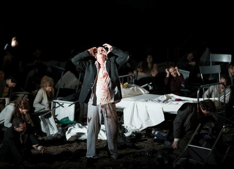 Pěvecký soubor nastudování je velmi vyrovnaný. Zkušený a spolehlivý Richard Croft, který ztvárnil Idomenea již v řadě inscenací a s Jacobsem pořídil i nahrávku tohoto díla, vede svůj pěvecký výkon v lyrickém melosu bez přepínání a bez větších dynamických afektů. Snad jen v místech několika nejvyšších tónů partu chyběl lesk a průraznost. Idamantes v masce chlapecky působící, jinak velmi půvabné, mezzosopranistky Gaëlle Arquez si získal diváky krásnou barvou hlasu a kultivovaností projevu. Trochu nevděčná role trpící Ilie v podání sopranistky Sophie Karthäuser dostává právě v dramatičtějším pojetí pevnější obrysy a více se profiluje jako vztahová protagonistka. Pěkný tenor Juliena Behra si se zkrácenou rolí Arbaceho také poradil bez problémů a zpěvák má před sebou jistě dobrou budoucnost v oboru mozartovského lyrického tenoru. Malou kuriozitou představení je použití záznamu hlasu orakula z Hranoncurtovy nahrávky (Luca Tittoto), v několika taktech tohoto partu jsme ale zvykli na více profondní hlas. Královnou večera od prvního výstupu se stala Marlis Petersen, současná hvězda operních divadel, často střídající moderní díla s klasickými party vysokého koloraturního sopránu. V minulé sezoně v místním divadle s přehledem zvládla všechny tři role v Offenbachových Hoffmanových povídkách a již tehdy si získala publikum svými hereckými kreacemi. Ač to není dramatický soprán typu Anji Harteros (která ohromila svou Elettrou před několika léty na festivalu v Salzburgu), a v árii z prvního dějství trochu chyběla dramatická špička a plnější hlasový objem. Její herecký projev je ohromující a dokonalé instinktivní (?) spojení zpěvu a herecké akce je zcela výjimečným fenoménem, se kterým se setkáváme i na světových jevištích zřídka. To samozřejmě nesnižuje její pěvecký výkon v nesmírně obtížném partu, který zvládá pomocí výborně vyškoleného v základu ovšem lyricko-koloraturního sopránu. Její výkon ocenilo publikum i na otevřené scéně potleskem i voláním a sklidila i největší ovace během děkovačky. Mimořádná inscenace si právem zasloužila mimořádný ohlas a nadšení celého publika.+++===