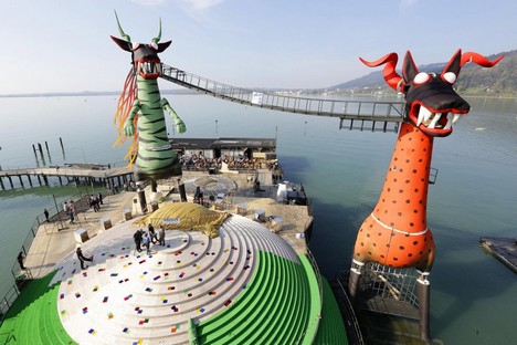 Tak je tomu každý rok. Mimo hlavní scény na jezeře sbor pravidelně nastuduje jednu operu soudobého skladatele, kterou potom spolu s dirigentem, sólisty a Vídeňskými symfoniky provede na festivalu ve světové premiéře. Rok před tím – 2012 – to byla opera Solaris Detleva Glanerta. Vzhledem k extrémní náročnosti a nutném počtu zkoušek ještě před odjezdem do Bregenz ani není možné uvažovat o externistech. To musíme zvládnout vlastními silami.