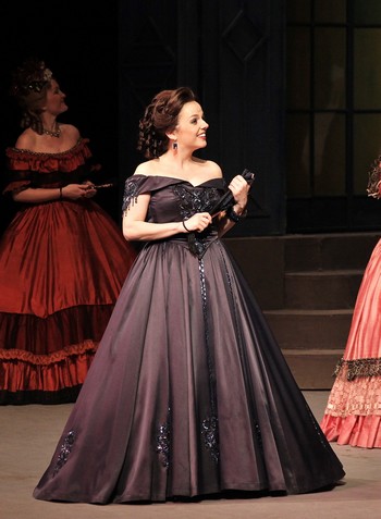 V letošní sezoně jste se na jevišti Národního divadla nově představila už také jako Violetta v La traviatě, nyní jako Karolina, což jsou obě dámy pohybující se ve vyšší společnosti. Jak se vám v ní líbí?