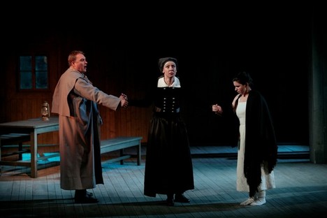 Ak by sme vychádzali z tézy dramaturga, že dominantnou postavou opery je Jenůfa, potkli by sme sa už na prvej premiére. Katarína Juhásová-Štúrová má zatiaľ pre ňu len štíhle, ale už pevné výšky. Celkovo je to stále soprán lyrický, hoci tmavšie sfarbený, no „teplo“ v timbri a schopnosť spievať v objeme aj strednú polohu sú asi len hudbou budúcnosti. Naopak, Adriana Kohútková zapôsobila veľmi intenzívnym ponorom do postavy, akcentovaním rovnako jej temperamentu, ako aj bôľu, citových zlomov, ba až boja o vzťahové prežitie. Hlas znel zamatovo, výšky svietili, stredná poloha mala sýtosť. Premiéry ponúkli dve diametrálne rozdielne Kostelníčky. Eva Urbanová rolu stvárnila veľakrát, doma aj vo svete, u Ľubice Rybárskej išlo o osobný debut. Jedno majú spoločné: obe vlastnia stále impozantné dramatické soprány. Prvá z nich postavu formuje podľa slov Starenky Buryjovky, adresovaných Jenůfe „mužský rozum máš po svojí pěstounce…“. Urbanovej Kostelníčka je autorita. Má pevný krok, je rázna, chladná, vokálne pointovaná v silných kontrastoch medzi viacnásobne použitými pianissimami a až naturálne hrudnými hĺbkami. Občas má až mužské rysy, len tá vrstva utrpenia, ktorú jej prináša krutý čin, akosi strácala na vierohodnosti. Kostelníčka Rybárskej je mäkšia, má menej ostňov, ale črty súcitnosti sa z nej prihovárajú úprimnejšie. Ak sa jej aj miestami hlboká poloha vymkla z rezonancie, nahradila ju vskutku parádnym, objemným a stále mimoriadne farebným hlasom v stredoch a výškach.