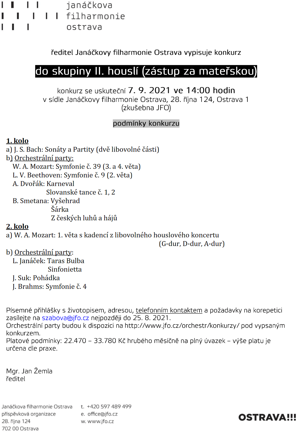 Inzerce Janáčkova filharmonie Ostrava přijme hráče do skupiny II. houslí Publikováno 27/06/2021 sdílejte: 0 minut čtení sdílejte: TémataSeznam inzerátů Sdílet článek Facebook email zkopíruj odkaz vytisknout sdílejte: Předchozí článek Člověka do malování nepouštím, do hudby ano, říká skladatel a výtvarník Vladimír Franz Další článek Brno Contemporary Orchestra zakončí pandemickou sezonu koncertem na břehu Svratky 0 0 hlasy Ohodnoťte článek Odebírat Přihlášení Upozornit na nové a další komentáře nové odpovědi na můj komentář Label {} [+] Jméno* E-mail* Webová stránka Label {} [+] Jméno* E-mail* Webová stránka 0 Komentáře Nejstarší Nejnovější Most Voted Inline Feedbacks Zobrazit všechny komentáře Načíst další