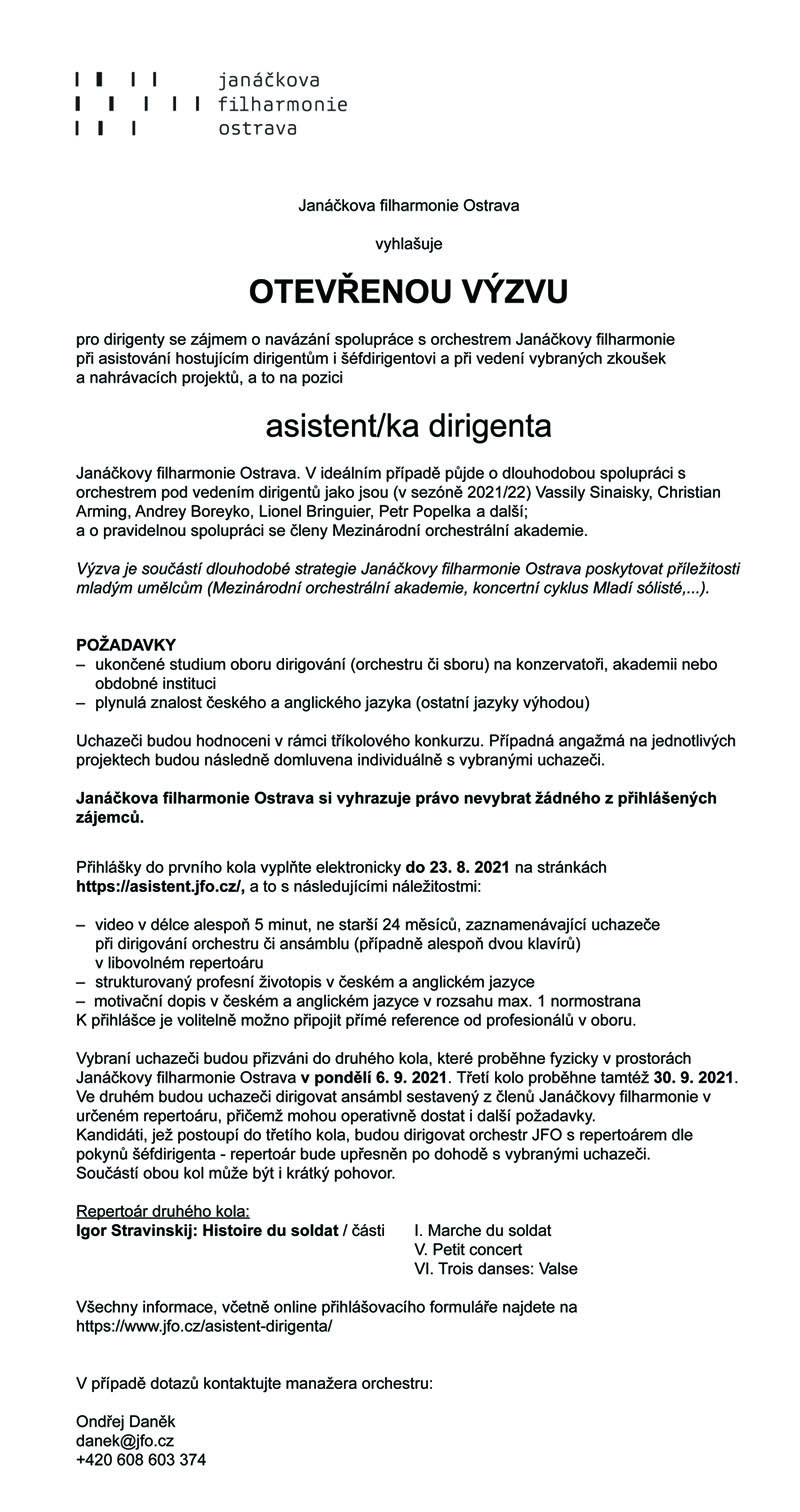 Inzerce Janáčkova filharmonie Ostrava vyhlašuje konkurz na pozici asistenta dirigenta Publikováno 29/06/2021 sdílejte: 0 minut čtení sdílejte: TémataSeznam inzerátů Sdílet článek Facebook email zkopíruj odkaz vytisknout sdílejte: Předchozí článek Závěr ostravského festivalu Leoše Janáčka na Hukvaldech byl plný emocí Další článek Igor Vejsada se s Pražským komorním baletem rozloučí s taneční kariérou 0 0 hlasy Ohodnoťte článek Odebírat Přihlášení Upozornit na nové a další komentáře nové odpovědi na můj komentář Label {} [+] Jméno* E-mail* Webová stránka Label {} [+] Jméno* E-mail* Webová stránka 0 Komentáře Nejstarší Nejnovější Most Voted Inline Feedbacks Zobrazit všechny komentáře Načíst další