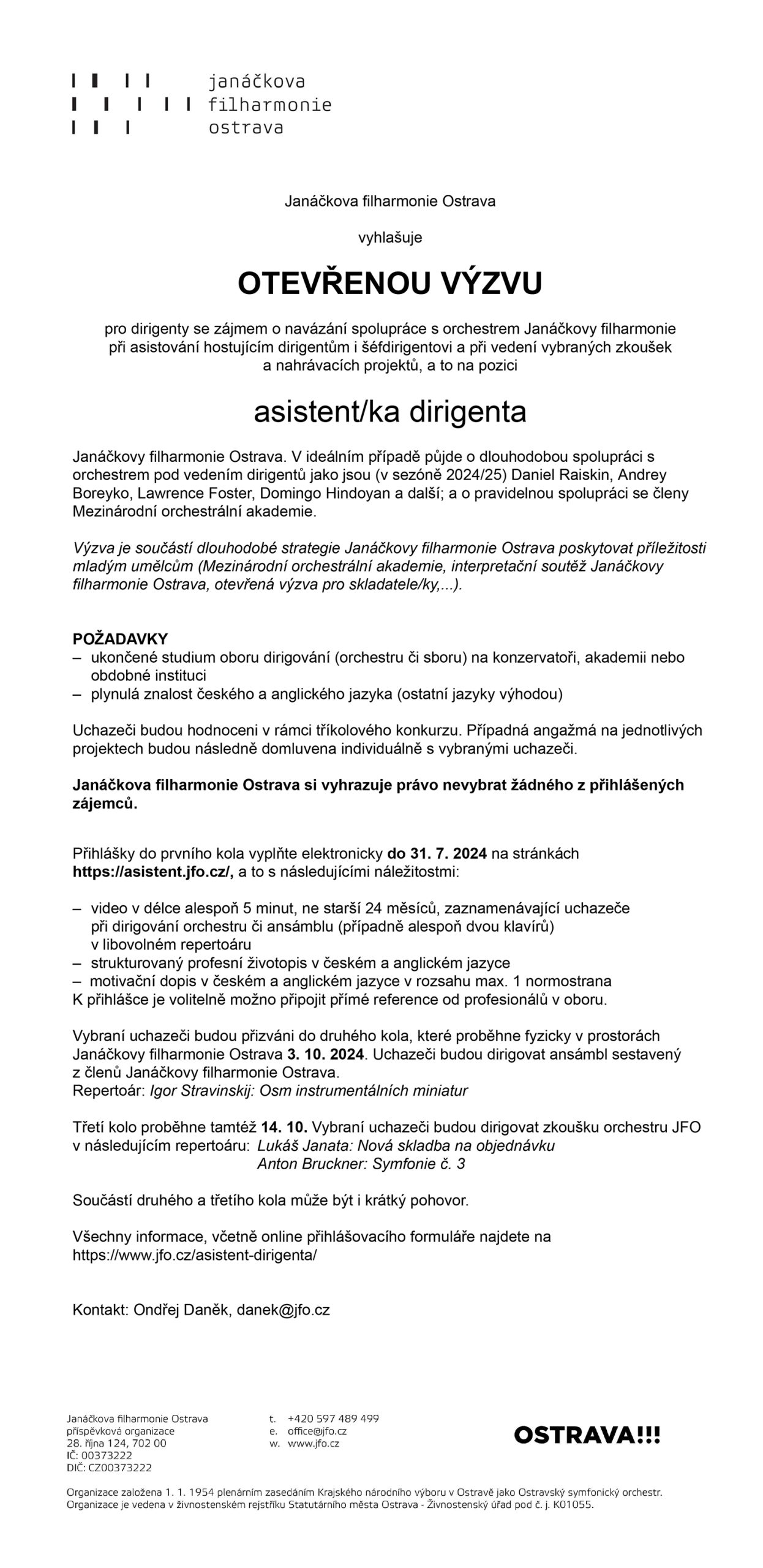 Inzerce Janáčkova filharmonie Ostrava vyhlašuje otevřenou výzvu pro dirigenty Publikováno 23/06/2024 sdílejte: 0 minut čtení sdílejte: TémataSeznam inzerátů Sdílet článek Facebook email zkopíruj odkaz vytisknout sdílejte: Předchozí článek Vivat Messi: Od snu k euforii Další článek Filharmonie Brno jako na houpačce: Ucházející Dvořák a strhující Sibelius 0 0 hlasy Ohodnoťte článek Odebírat Přihlášení Upozornit na nové a další komentáře nové odpovědi na můj komentář Label {} [+] Jméno* E-mail* Webová stránka Label {} [+] Jméno* E-mail* Webová stránka 0 Komentáře Nejstarší Nejnovější Most Voted Inline Feedbacks Zobrazit všechny komentáře Načíst další