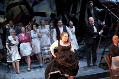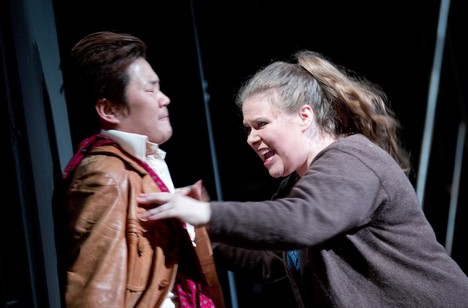 Poslední, snad nejdůležitější protagonistkou opery, která přeruší veselí rekrutské scény, je Kostelnička. Její úvodní výstup ve většině případů dá tušit, jak si povede ve své nesmírně náročné roli. Úvodní vstup její představitelky v Geře, štíhlé hostující Béely Müller (působí také jako docentka zpěvu v salzburgském Mozarteu) mi nepřipadal dost razantní. Ale zdání klame a její další prezentace až do konce byla výtečná.