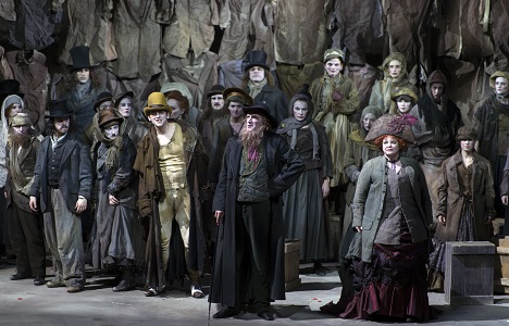 Režie Juliana Crouche a Sven-Erica Bechtolfa sice spolu s fantazijními kostýmy Kevina Pollarda vytvoří několik pěkných tableaux, ale jinak zůstává na povrchu. Kulisy se přenášejí sem a tam, zase jednou jde o ilustraci a ne o interpretaci, což opět klade otázku po smyslu takového počínání. Nepolitické divadlo, zaměřené jen k pobavení, a estetizované. Choreografie je u jakékoli muzikálové produkce lepší.