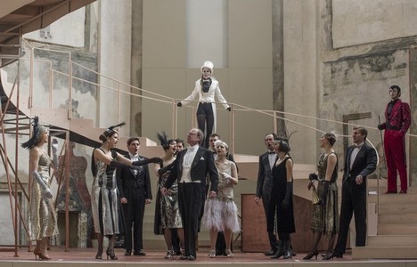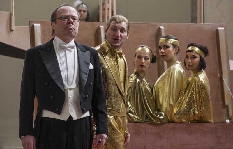 Originální nápad dramaturgů Symfonického orchestru hl. m. Prahy FOK a Divadla na Vinohradech spojit hru se Sibeliovou scénickou hudbou a Martinovým písňovým cyklem zaslouží více než pochvalu. V novém překladu Věry Koubové vzniklo působivé představení v efektním prostoru Pražské křižovatky (kostel sv. Anny). Devadesátiminutové představení zasadila režisérka Jaroslava Šiktancová na menší jevištní prostor, ve kterém si zdařile pomohla spirálovou schodištní konstrukcí ukončenou krátkou rampou (scéna Pavel Kodeda).