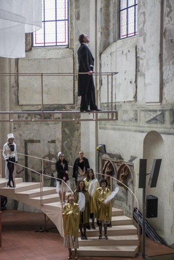 Pozornost na sebe upoutávají Daniela Kolářová (Máti Kohokoli), Andrea Elsnerová (Skutky a Dlužníkova žena) a Jaromír Meduna (Kohokoli Dobrý druh) v přesných studiích vedených v přísných hereckých konturách. Závěr dynamizuje vystoupení pohybově nadaného Lukáše Příkazského (Čert), možná až příliš stylizovaného do typu lidového divadla, přesto v rámci představení osvěžujícího (to peklo snad nebude tak strašné). Závěrečné poselství hry poněkud zeslabuje nevýrazný a hlasově nezvučný výkon Marie Radové v krátké, ale důležité alegorické roli Víry, která provází hlavního hrdinu do Nebes po jeho pokání. Barytonista Roman Janál spolehlivě přednesl čtyři písně z Martinova cyklu (1., 2., 5., 6.) v německém originále. Jeho výrazově bohatý výkon trochu rušila málo diferencovaná dynamika, kdy většinu písní odezpíval ve forte a s příliš otevřeným tónem ve výškách. Například nahrávka Josého van Dama přesvědčuje o výrazových možnostech dynamické diferenciace ve vyjádření zoufalství a rezignace Jedermanna. Také by snad bylo možné písně interpretovat bez nahlížení do not s větším kontaktem s publikem. Zařazení písní (otázkou je také jejich výběr a proč nebyl zařazen celý cyklus v celkové délce cca pětadvaceti minut) v němčině poněkud vzdálilo jejich účinek vlastní činohře a přes jejich působivost zněly v představení trochu cizorodě. Navíc program obsahuje překlad pouze dvou ze čtyř uvedených písní. Písně by si zasloužily souběžný překlad v programové brožuře. Symfonický orchestr hl. m. Prahy FOK s dirigentem Markem Ivanovićem se Sibeliovou partiturou vyrovnal velmi dobře, stejně jako s akustikou odsvěceného kostela. Monumentálně zněl především závěr ve spojení orchestru s varhanním zvukem.