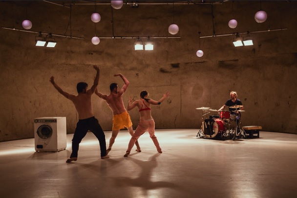 Variací na zadávání rytmu je nutnost respektovat závazné ticho. U bicí soustavy nakonec zůstává totiž jen hudebník, zatímco tanečníci rozjíždějí performanci do jakési hry na nejlepší skupinové pózy, jež hrozí každým okamžikem zhroucením, ale to je dovoleno až s úderem do činelů. Partnerem se stává i vrčící a nadskakující pračka, na níž je možné zaujmout další paletu akrobatických pozic. Nevím, zda je tu nějaká přímá souvislost, ale všeobecný názor spotřebitelů je, že pračka Tatramat a lednička Calex vydržely bez větších oprav desítky let a s výdrží dnešních spotřebičů se nedají ani srovnat. Ten výrobek je možná vlastním vrstevníkem interpretů a při všem svém proslulém tancování po koupelnách, na něž uživatelé taktéž hojně vzpomínají, prokázal extrémní houževnatost – tak jako profesionální tanečník ve svém těle.