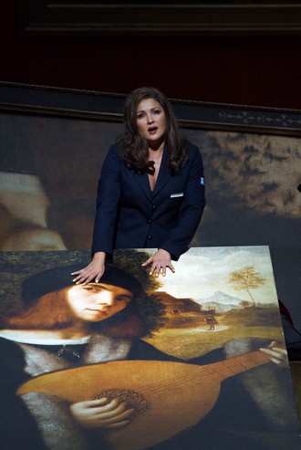 Zvolená režijní koncepce, která propojuje současnost a historii, bohužel nefunguje. Nedovoluje ději se naplno rozproudit, jakoby se děj neustále zasekával a odehrávaly se jen jednotlivé scény (výstupy). Dochází i k nesouladu dění na jevišti s právě znějícím libretem. Některá hudební čísla se odehrávají mezi návštěvníky, kteří výstup sledují, jako by četli z obrazu jeho příběh, jindy jsou součástí historického příběhu všichni zúčastnění.