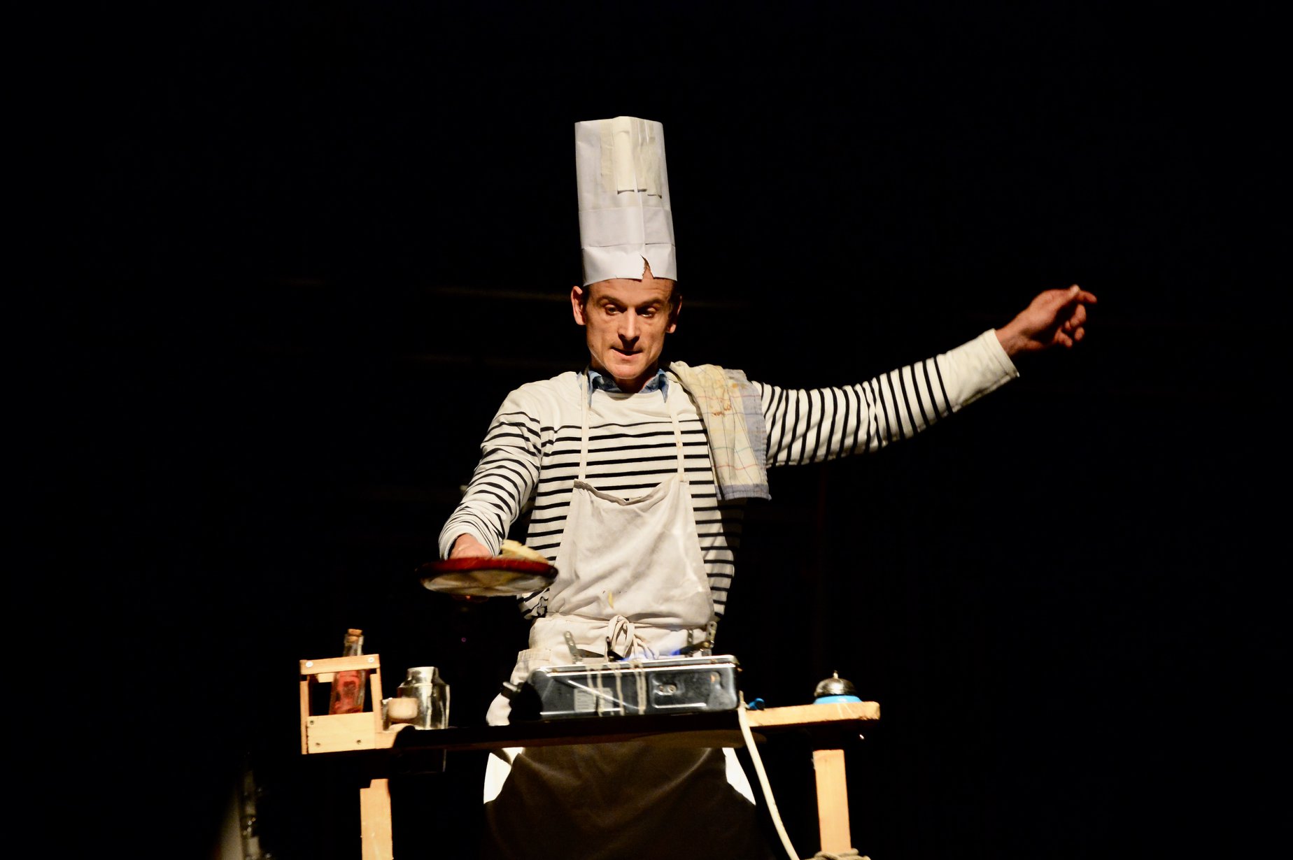 Ještě větší moment překvapení přichází, když namísto rolla bolla – jež obnáší balanc na prkně položeném na válci – přitáhne Lucho Smit do manéže malou kuchyňskou linku, tu postaví na plynovou bombu a sám balancující na této vratké konstrukci vaří palačinku. Tu nejen že spálí, ale dokonce zapálí, a pak se ji ještě bezostyšně pokouší za dvacet korun prodat publiku.