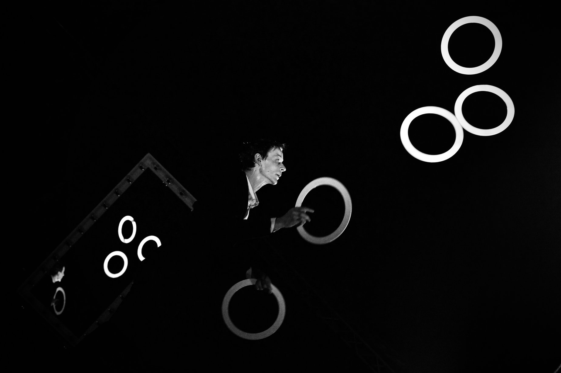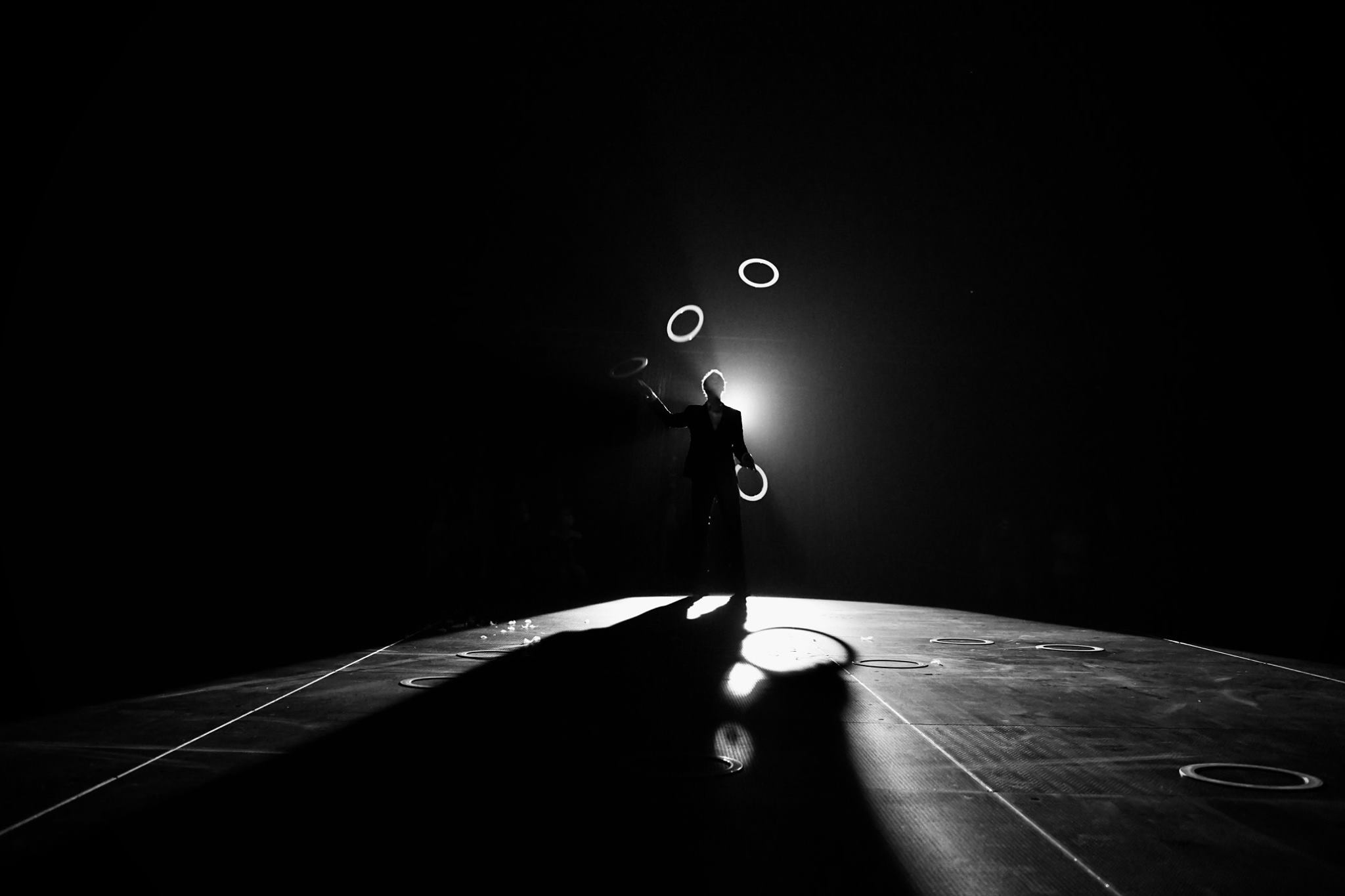 Ukazuje nám, že s každým obrazem, kterému se násilně snaží vtisknout nějaký smysl, tento obraz smyl pozbývá a stává se prázdným. Dlouhé a žonglérsky náročné vystoupení, ve kterém zkouší různé variace se třemi až šesti kruhy, korunuje artista groteskním vyvrcholením. V potemnělé manéži, kterou osvětlují drobné paprsky, začne ztrácet pojem o prostoru, a tak mizí i z kuželu světla. Zmateně tak pobíhá, hledá svůj paprsek lampy, a tím dokonale narušuje onu magickou iluzi kouzelného světa plného žonglérských triků.