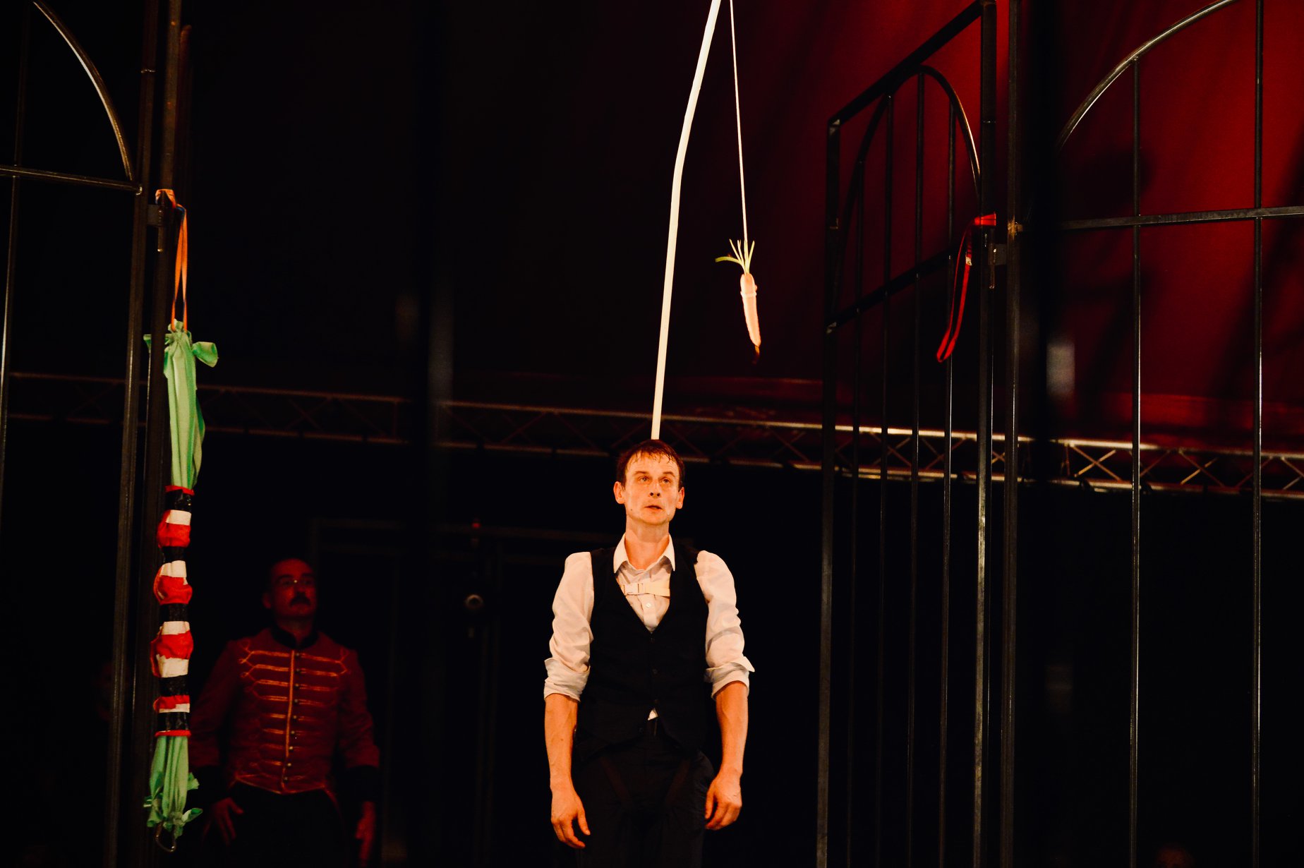 Paličatý a posedlý svým vlastním cílem, takový je hlavní hrdina inscenace L’âne & la carotte, jejíž název explicitně poukazuje na to, jak jeho veškeré snažení stejně dopadne. Než ale skutečně zjistí, co v cirkuse, umění a obecně v životě smysl má anebo nemá, čeká ho na jeho zhruba hodinu a půl dlouhé cirkusové cestě řada karambolů. Jeho cíl je ale vznešený – pokusit se o přerod jednoho umělce a jeho publika, tedy pokusit se pomocí cirkusu něco změnit.