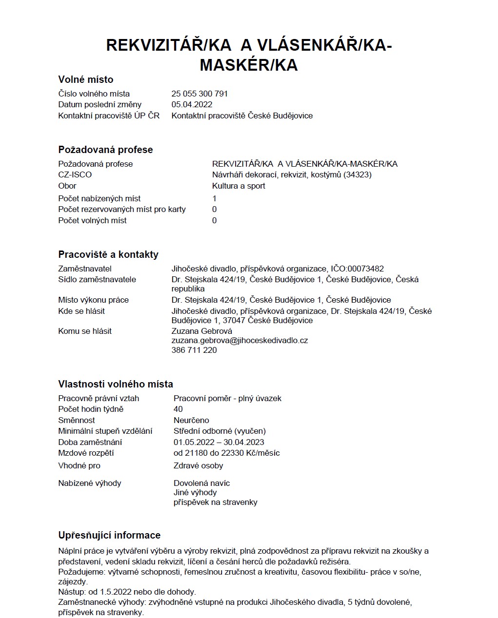 Čtení Jihočeské divadlo hledá rekvizitáře, vlásenkáře, maskéra