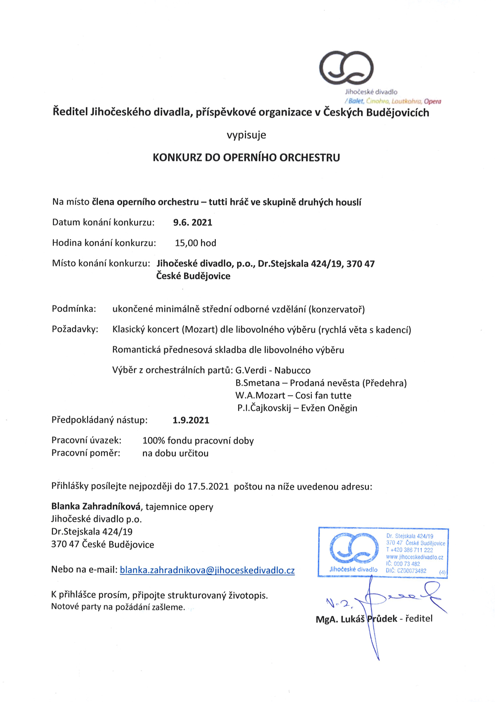 Inzerce Jihočeské divadlo vyhlašuje konkurz na pozici tutti hráče ve skupině druhých houslí Publikováno 27/04/2021 sdílejte: 0 minut čtení sdílejte: TémataSeznam inzerátů Sdílet článek Facebook email zkopíruj odkaz vytisknout sdílejte: Předchozí článek Týden s tancem Další článek 16. ročník hudebního festivalu Za poklady Broumovska vzdá hold létu 0 0 hlasy Ohodnoťte článek Odebírat Přihlášení Upozornit na nové a další komentáře nové odpovědi na můj komentář Label {} [+] Jméno* E-mail* Webová stránka Label {} [+] Jméno* E-mail* Webová stránka 0 Komentáře Nejstarší Nejnovější Most Voted Inline Feedbacks Zobrazit všechny komentáře Načíst další