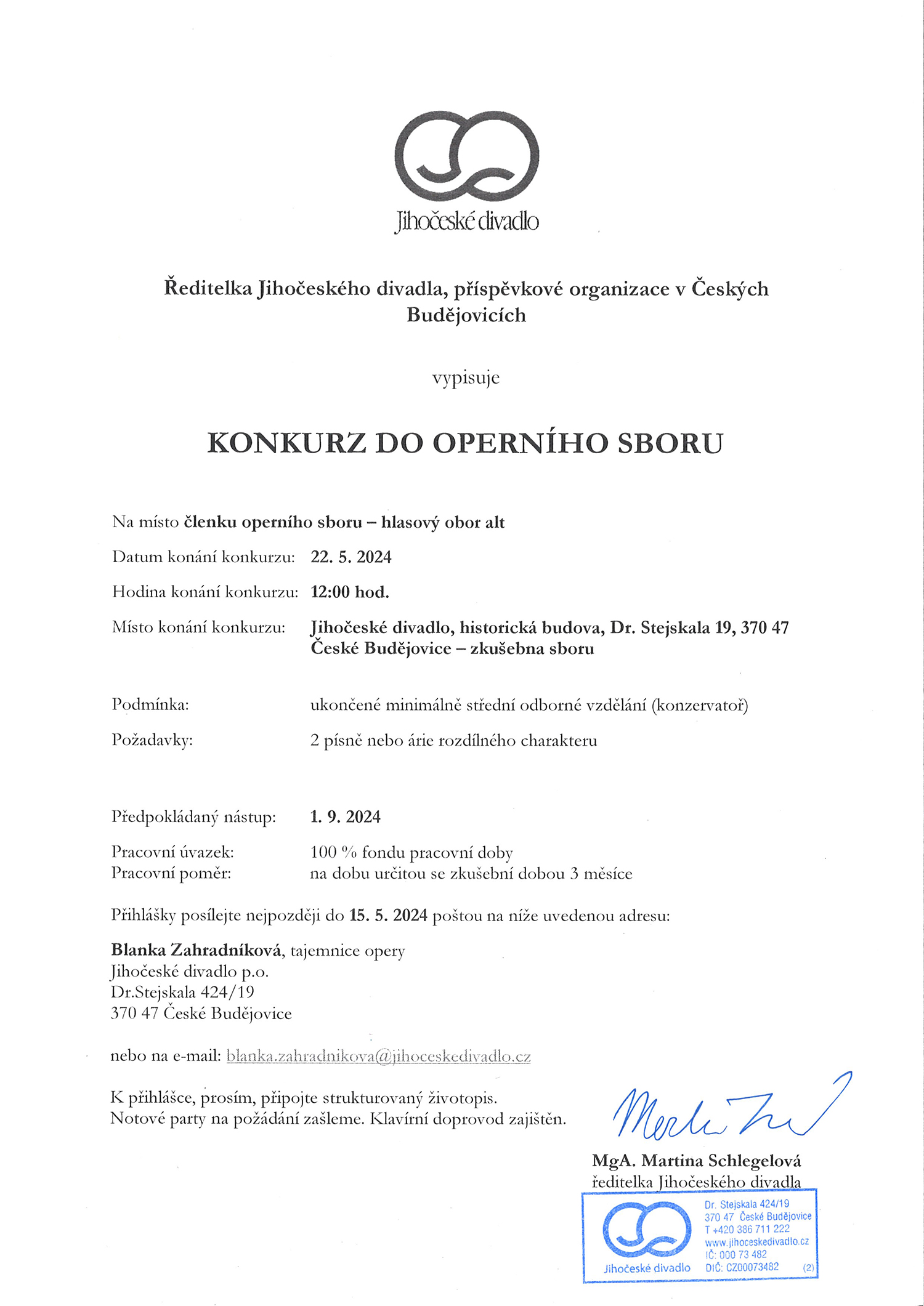 Čtení Jihočeské divadlo vypisuje konkurz do operního sboru