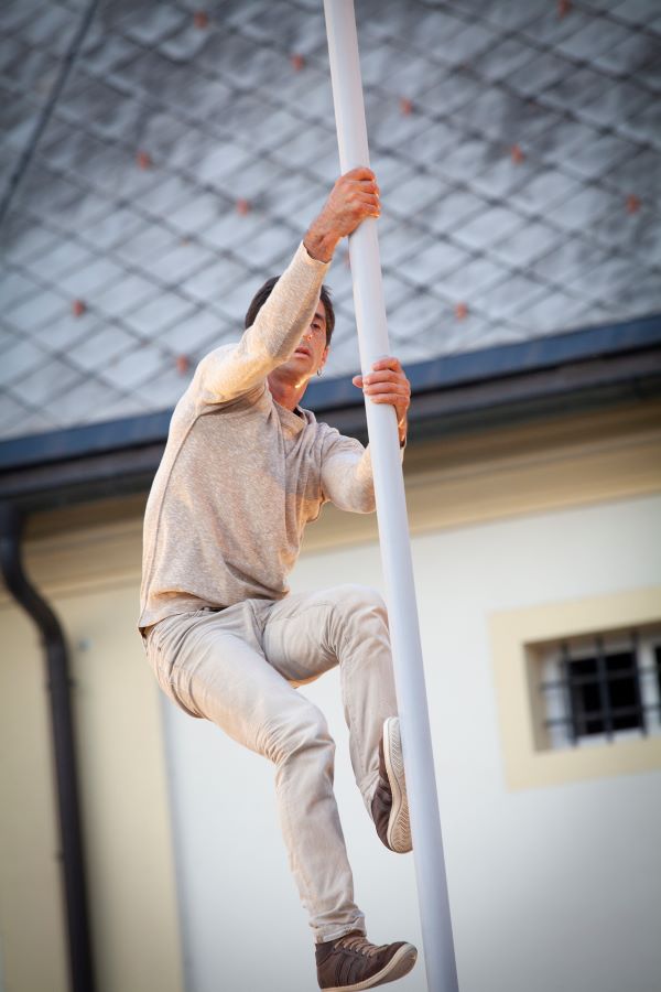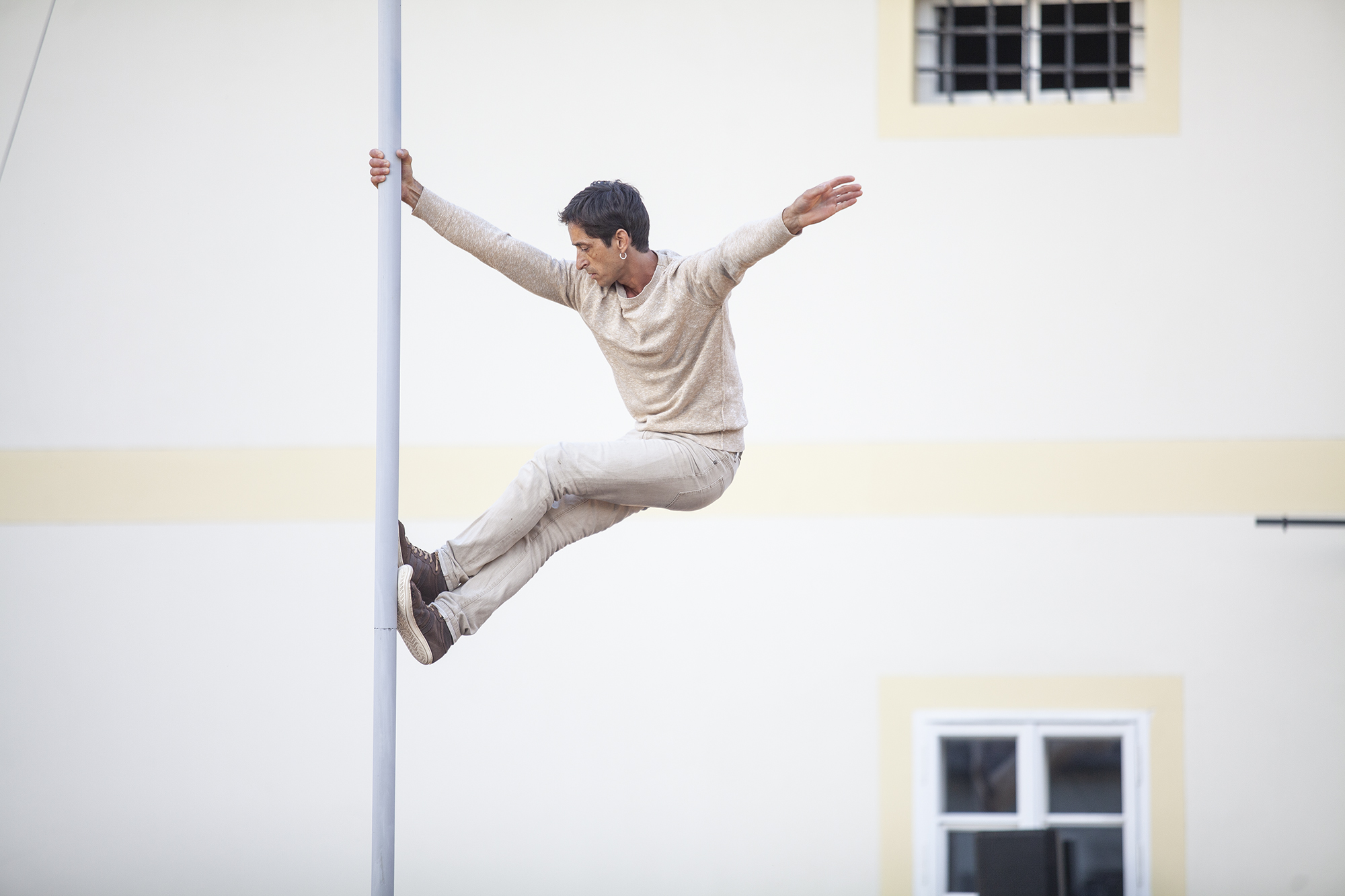 João Paulo Santos je portugalský novocirkusový performer, který se proslavil výkony na čínské tyči. Od roku 2004 vystupuje po uskupením O Último Momento, které založil s francouzským hudebníkem Guillaumem Dutrieuxem, a o rok později vytvořili první dílo Peut-être. S představením Contigo navštívil v roce 2016 český festival nového cirkusu, současného tance a pohybového divadla KoresponDance, na který se letos vrátil se sólem Une partie de soi a duetem L’Autre.