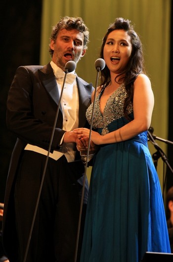 Jonase Kaufmanna doprovázel Symfonický orchestr Českého rozhlasu v Praze s dirigentem Jochenem Riederem. Jako vždy v těchto akcích orchestr nejen doprovázel pěvce, ale účinkoval v samostatných vstupech. Hodnotit amplifikovaný, a tím ne zcela vyrovnaný zvuk, je nesnadné, lépe se bude hodnotit zvuk ze záznamu rozhlasové stanice Vltava. Volba ouvertury k Verdiho Liuse Miller (u nás premiérované až roku 1963 v Plzni), ale také obě symfonická intermezza z oper Thaïs (Jules Massenet) a Sedlák kavalír (Pietro Mascagni), vyzněla v tektonice skladeb velmi přesvědčivě. Ve večeru účinkovala mladá lyrická sopranistka Soo Yeon Kim, která se prezentovala klíčovou árií z Pucciniho Madam Butterfly a Dvořákovou Rusalkou, nejlépe jí ale pěvecky slušel jeden z přídavků, který jsem již výše zmiňoval (Pucciniho Lauretta).