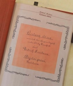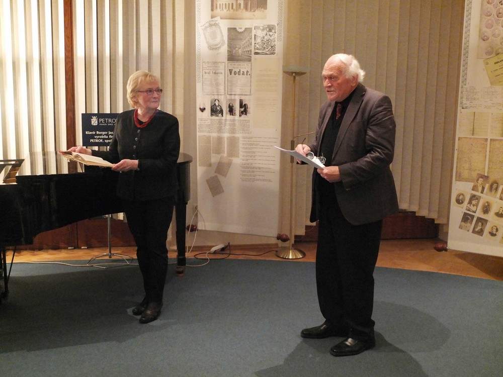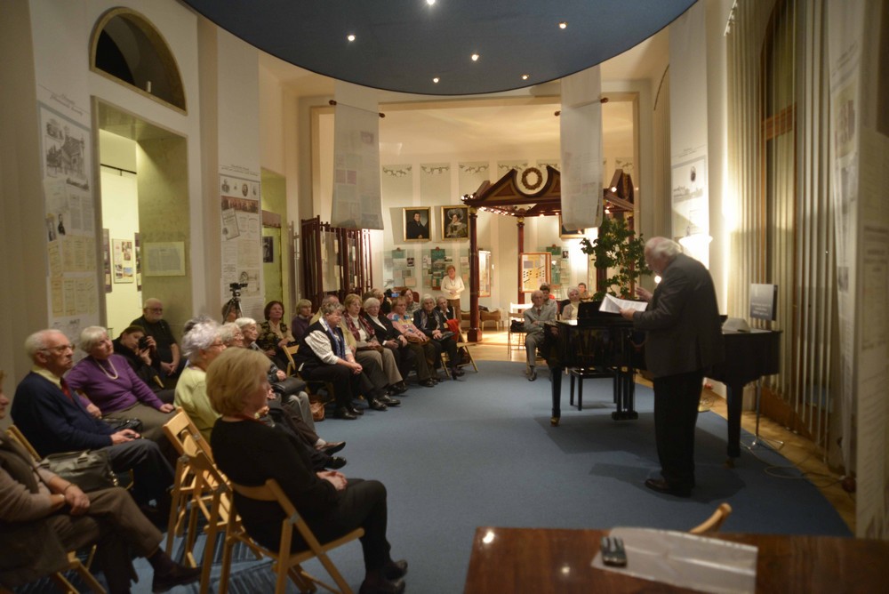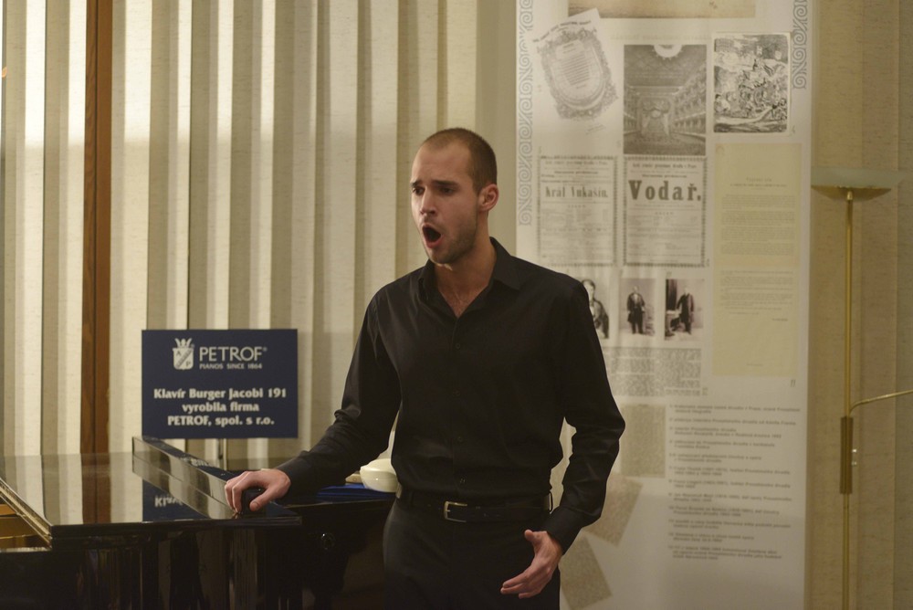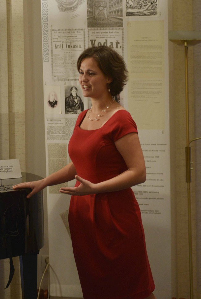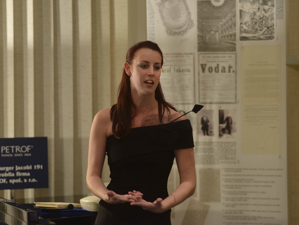 Na úvod Čertovu stěnu připomněla ze zvukového záznamu předehra k opeře. Použita byla nahrávka firmy Supraphon v nastudování vynikajícího dirigenta Zdeňka Chalabaly s orchestrem a sólisty Národního divadla v Praze z roku 1960. Největším zpestřením ale bylo uvedení několika árií opery v provedení mladých posluchačů Pražské konzervatoře a HAMU. Klavírní doprovod umělců byl v aranžmá zkušené profesorky Jany Nácovské. Jako první slyšeli posluchači árii Záviše, která je zajímavá obzvláště tím, že v hraných inscenacích Čertovy stěny se běžně neuvádí. Zazpívala ji posluchačka konzervatoře Anna Šimková (prof. Zbyněk Brabec). Následovala árie Katušky z prvního dějství, v podání Heleny Hálové z Pražské konzervatoře. Mladá studentka, která studuje u prof. Jiřiny Přívratské, vládne oblým a příjemným sopránem, její mládí navíc dodalo ztvárnění zamilované mladé dívky přirozený a přesvědčivý půvab. Přibližně v polovině večera pak zazněly dvě reprodukované árie Raracha v podání mladého talentovaného basisty Josefa Šťávy; snímek byl pořízen právě ve Smetanově muzeu před třemi lety. V závěru pak Luboš Skala, posluchač z HAMU u prof. Romana Janála, vzorně přednesl znělým hlasem nádhernou árii Petra Voka z Rožmberka ,, Jen jediná mne ženy krásná tvář tak dojala …. ´´. Zde bych trochu odbočil a připomenul celou plejádu vynikajících barytonistů v této roli, z nichž byl pro mne nekorunovaným králem Václav Bednář, kterého jsem jako mladík několikráte slyšel. Koncertní vložku ukončila zpěvem Záviše štíhlá, elegantní mezzosopranistka Alžběta Vomáčková;.ta je studentkou Pražské konzervatoře ze třídy prof. Brigity Šulcové, která byla také v publiku přítomná. Dotyčná árie je pro interprety určitě efektnější, nežli první Závišův zpěv, který Smetana vypustil. Alžběta Vomáčková mimo jiné zpívala tuto árii Záviše i na pěvecké soutěži Antonína Dvořáka v Karlových Varech, kde získala v loňském roce druhé místo. Dle mého názoru mohlo být v poměru k mluvenému slovu ještě nějaké to hudební číslo navíc, což přinese vždy příjemné oživení a zpestření programu. Všechny přítomné jistě ovládl duch velkého skladatele a umocněním jeho přítomnosti byl pak pravnuk Bedřicha Smetany Petr Hejdušek v publiku.