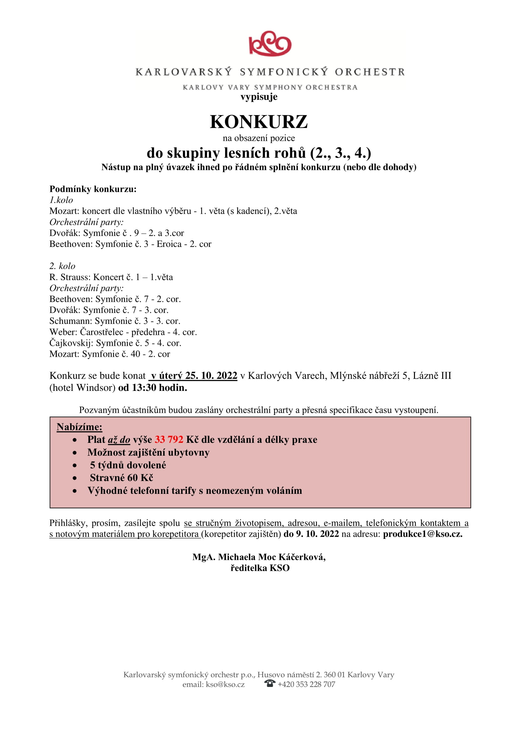 Čtení Karlovarský symfonický orchestr vypisuje konkurz na obsazení pozice do skupiny lesních rohů