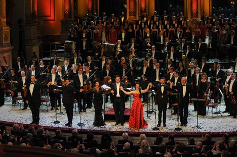 Tradici připomínání toho nejlepšího, co kdy vzniklo na poli operety, se v rámci Silvestrovských koncertů Staatskapelle Dresden věnuje umělecký šéf orchestru Christian Thielemann už od roku 2010. Připomeňme, že tehdy v koncertní verzi nastudoval Lehárovu vdovu, v níž si s chutí zazpívali Renée Fleming, Christopher Maltman, Andrej Dunaev a Carolina Ullrich. O rok později se v galavečeru s lehárovským programem představili Piotr Beczała, Angela Denoke a Ana Maria Labin. V roce 2012 se Beczała vrátil s tentokráte kálmánovským repertoárem a partnerkou se mu stala Ingeborg Schopf. Vloni namíchal Thielemann pro publikum možná až příliš pestrý mix s podtitulem Světové hity od Berlína po Broadway (recenzi jsme přinesli zde), ovšem s výtečnými sólisty Renée Fleming a Klausem Florianem Vogtem. Letošní příspěvek k sérii je tedy možné označit v řadě jako pátý, a tudíž půlkulatý. Jeho hudební náplní se 28. prosince 2014 stalo koncertní provedení zmíněné Čardášové princezny, a to v pěveckém obsazení, které je možné označit jako nebývale luxusní i v porovnání s výše uvedenými jmény.
