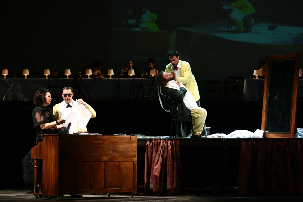 Pokiaľ niekto Rossiniho tvorbe či konkrétne Barbierovi zo Sevilly nedôveruje, mal by naňho radšej zabudnúť. Ak však prijme poverenie popasovať sa s ním na reprezentačnej scéne, bez zmierenia sa s predlohou to jednoducho nejde. Musí ho dokázať „prečítať“ nielen cez text, ale hlavne prostredníctvom nôt a cez skladateľov štýl a hudobnú poetiku. Roman Polák sa čestne priznal, že noty nepozná a vychádza z libreta. Zjavne taliančina cez jeho činoherné sluchové receptory neprechádza, keď ešte na predpremiérovom matiné nedokázal správne vysloviť ani meno Rosiny. Čo už. Ale jeden bod mu pripíšem k dobru. Úprimne poznamenal, že s Barbierom sa z doterajších operných réžií (Don Giovanni a Tosca v Košiciach, Krútňava a Coriolanus v Banskej Bystrici) natrápil najviac. Verím mu to. Bez dôvery v predlohu musí byť jej rozlúsknutie bolestivé. Skutočnosť, že Barbiera zo Sevilly, tak ako ho Gioacchino Rossini napísal pre rímske Teatro Argentina roku 1816 (vtedy pod názvom Almaviva, alebo Márna opatrnosť) Polák neakceptoval, dokladá, že v ňom začal škrtať. A svoju koncepciu oprel o celý rad zástupných vrstiev. Ešte viac mrzí, že dirigent ani dramaturg mu nezabránili vo vyhadzovaní „prebytočných“ nôt. Nota bene dnes, keď vládne trend vracať sa v historicky poučených interpretáciách čo najtesnejšie k pôvodinám.