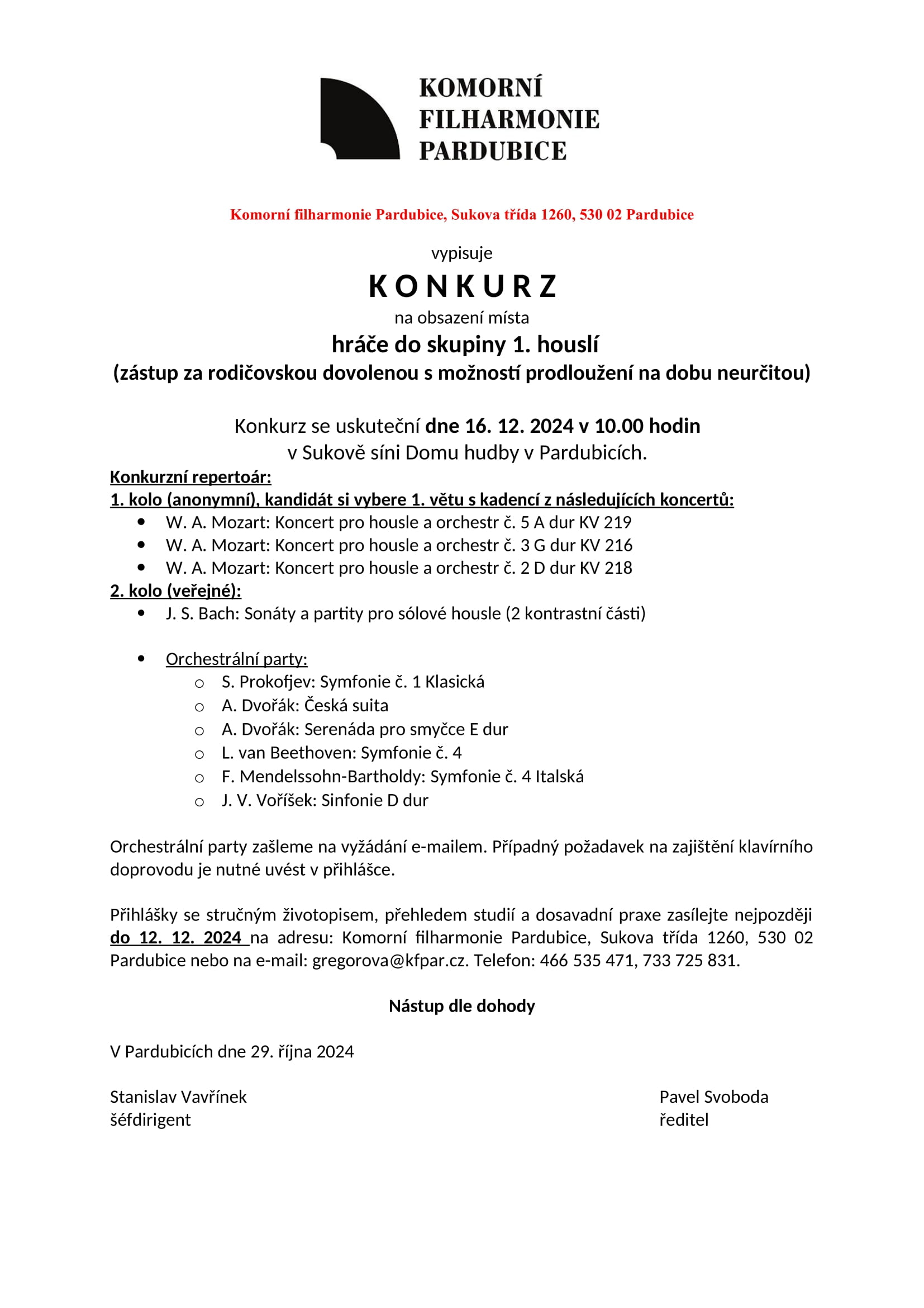 Inzerce Komorní filharmonie Pardubice vyhlašuje konkurz na místo hráče do skupiny 1. houslí redakce Publikováno 05/11/2024 sdílejte: 0 minut čtení sdílejte: TémataSeznam inzerátů Sdílet článek Facebook email zkopíruj odkaz vytisknout sdílejte: Předchozí článek Týden s tancem Další článek Hudební salón Café crème zavzpomíná na Geraldine Muchovou 0 0 hlasy Ohodnoťte článek Odebírat Přihlášení Upozornit na nové a další komentáře nové odpovědi na můj komentář Label {} [+] Jméno* E-mail* Webová stránka Label {} [+] Jméno* E-mail* Webová stránka 0 Komentáře Nejstarší Nejnovější Most Voted Inline Feedbacks Zobrazit všechny komentáře Načíst další