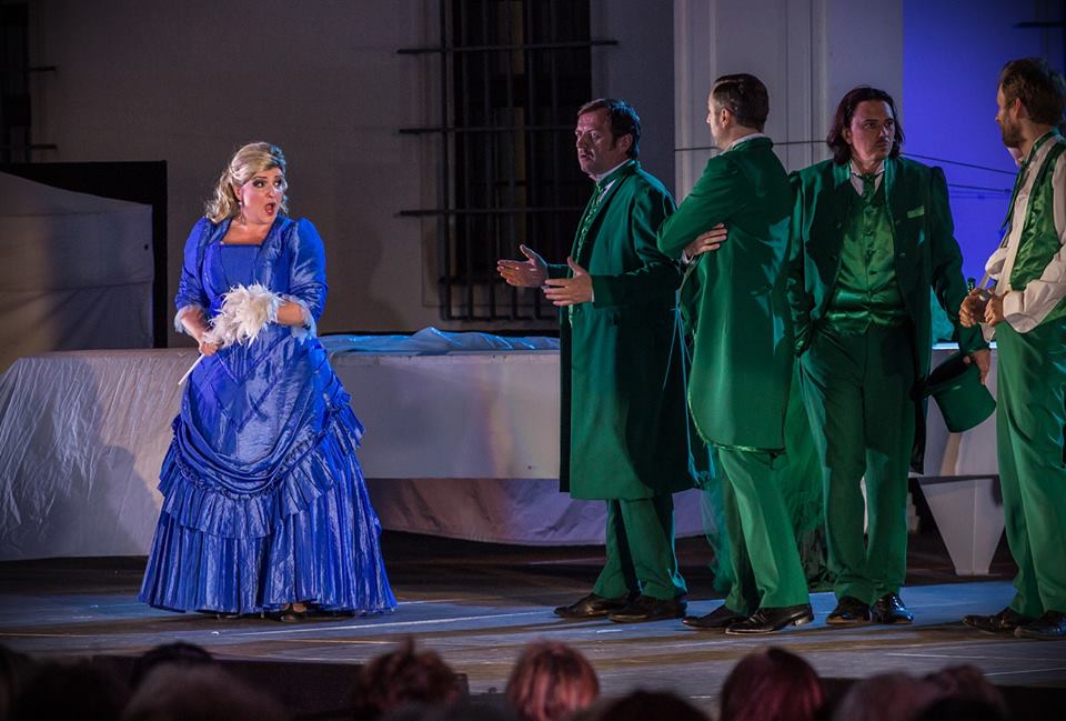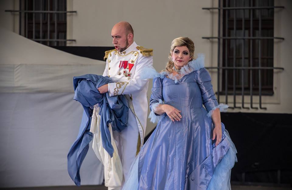 Druhé hradní nádvoří je vybaveno velkým pódiem a orchestr sedí v levé části na boku, což nijak neruší souhru s jevištěm. Akustika je vcelku dobrá, pěvci nepotřebují mikroporty – nicméně je měli a zvukař měl plné ruce práce. Především kvůli próze, která na nádvoří zanikala. Nechci se pouštět do technických problémů a důvodů, proč k nim dochází, ale vše se odvíjí od základního přístupu k operetě jako žánru. Že má svá specifika a nároky a že nestačí postavit na jeviště operní pěvce s tím, že operetu přece zvládnou. Je to jiná umělecká a technická kategorie. Operní zpívání a jevištní mluva mají jiné nároky na práci s hlasem a vyhnout se falešnému patosu a přesto udržet hlas v nosnosti, dokázali snad jen Jan Šťáva v roli otce Zaremby a Petr Levíček jako Popiel. Vztahy mezi protagonisty jsou průhledné, zato tu má prostor humor a v operetě žádaná současná extempóre. Tady zazářil Jan Šťáva, vkusně a srozumitelně. Obecenstvo, jež na tohle běžně není zvyklé, reagovalo okamžitě a vděčně.