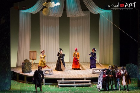 Jak je v terstské opeře téměř zvykem, patřilo k hlavním kladům představení jeho hudební nastudování a pěvecké výkony. Před precizně hrajícím orchestrem stál jeden z nejtalentovanějších španělských dirigentů mladé generace José Miguel Pérez-Sierra, působící pravidelně zejména u předních těles ve Valencii, Madridu nebo Barceloně. Jako odchovanec rossiniovského specialisty Alberta Zeddy má Pérez-Sierra pro italskou komickou operu zjevně to správné pochopení, takže i svého Falstaffa podal v sympaticky svižném tempu a zároveň i s důrazem na vyznění jemných orchestrálních detailů a fines. V titulní roli se představil zkušený barytonista Piero Terranova, pěvec s pozoruhodně širokým repertoárem, se kterým se už řadu let vrací především do milánského Teatro alla Scala. Jako Falstaff debutoval už roku 2009 ve Finské národní opeře a po vokální stránce má svůj part zjevně dokonale zažitý. Poslouchat jeho spíše světleji zabarvený hlas v úloze, v níž mohl naplno uplatnit svůj nevšední talent pro deklamaci i bezchybné frázování, bylo pro mě čirým potěšením. Zpěvák se navíc se svou parukou a plnovousem velmi (a předpokládám, že nikoliv náhodou) podobal Giuseppe Verdimu v pozdním věku, takže i tato skutečnost představovala pro inscenaci jistou přidanou hodnotu. Na okamžik, kdy Terranovův Falstaff-Verdi ve druhém dějství po odchodu paní Quickly heroicky zvolá „Alice é mia!“, pak křepce skočí na stůl, za kterým sedí páže nad jakýmisi lejstry, a vleže se začne se opájet budoucími úspěchy slovy svého krátkého monologu „Va’, vecchio John…“, budu určitě dlouho vzpomínat.